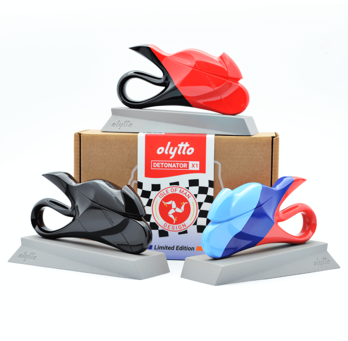 Mike Gost the man behind the OLYTTO putting the Isle of Man on the designer toy art collectables on the map! Mixing his love and heritage with a stylish art collectable that stands out. Even if you are not a motorcycle head we are sure you can appreciate the sleek distinctive look that Mike has created. Look at the curves and how sleek the DETONATOR X1 are! Plenty of variety to choose from and no fuel needed. Mike Gost of OLYTTO presents to you DETONATOR X1.