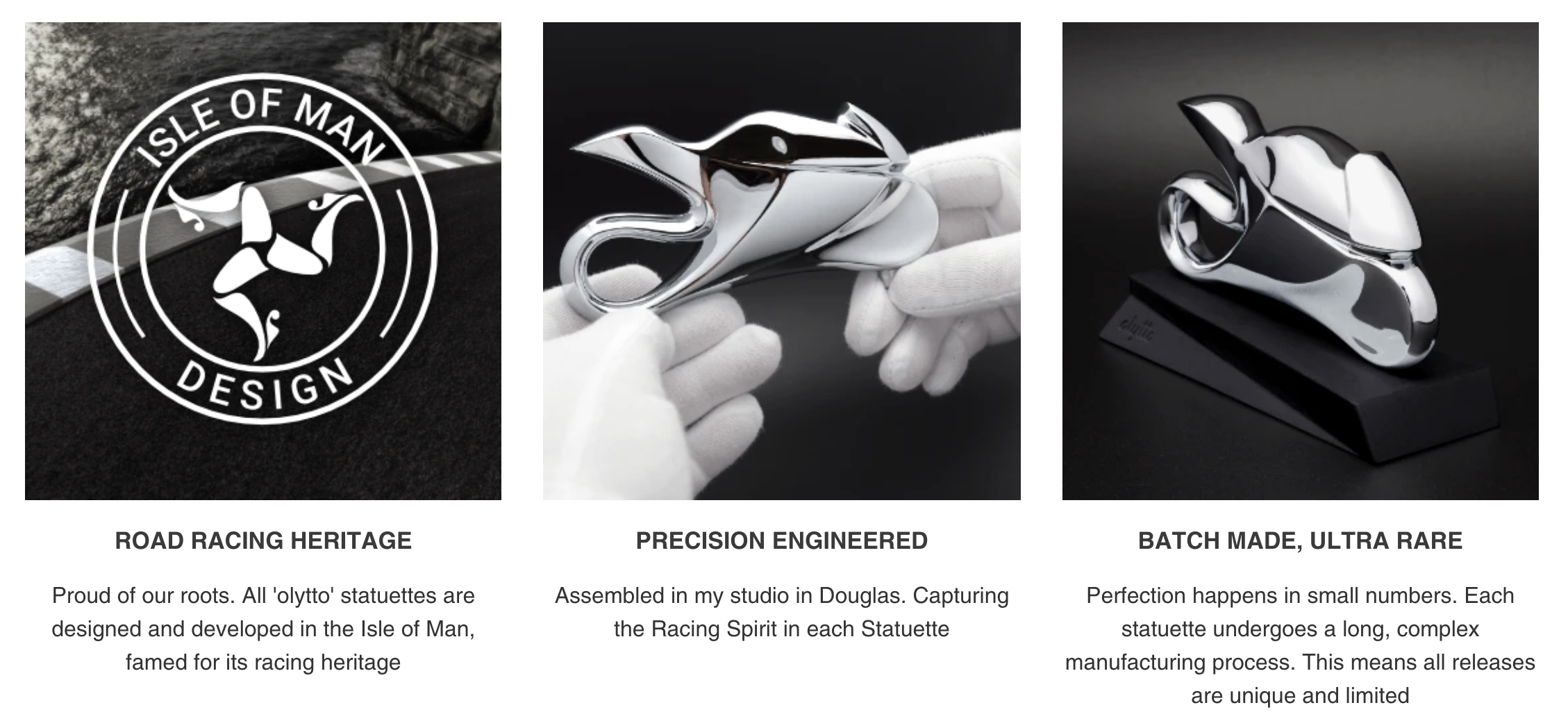 “The Island famed for its road racing heritage, especially the most dangerous road race in the World – Isle of Man TT Race. I mixed two concepts designer toy and road race and create hand-crafted, limited edition motorcycle statuettes”