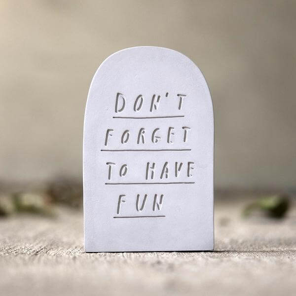 It’s often easy to forget, but in everything in life, don’t forget to have fun because before long it’ll be too late. That’s the simple message from Mr Bingo with the release of his Don’t Forget to Have Fun concrete gravestone.