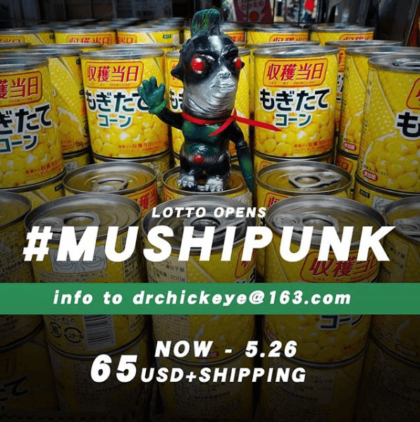 Dr.Chickeye is back with another release of Punk Ancestor sofubi figure. This time around in a ‘Mushipunk’ version, based on the tokusatsu superhero television series ‘Kamen Rider’ created by manga artist Shotaro Ishinomori. With the classic red, black and silver, the Punk Ancestor really dressed up for the occasion, it even comes with the classic red scarf;