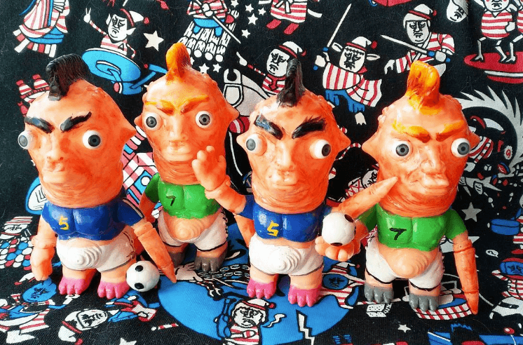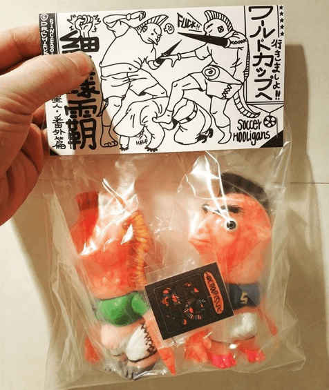 And now for something completely different. Dr.Chickeye is back with another release of the crazy eyed Punk Ancestor sofubi figures. It is said that if you look closely into these figures you’ll see the universal truth, or maybe just some unique soft vinyl sculpts. Here are the Mad Soccer Hooligans;