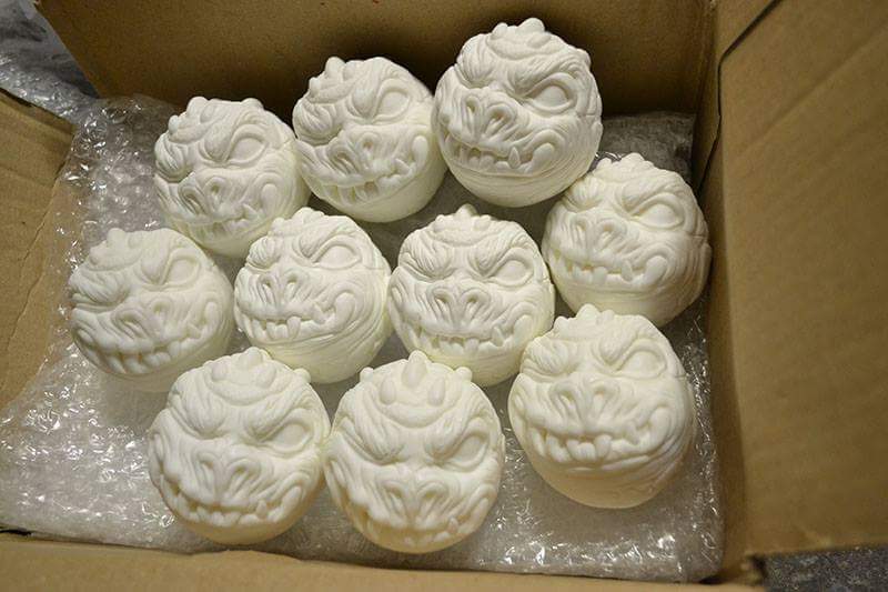 Sculpted by the one and only Mike “Nemo” Mendez, moulded and cast by The Forces of Dorkeness. Each Dragon ball is 100% pure resin and is currently available in 2 forms: pure white (suggested for customising) or Glow in the Dark.
