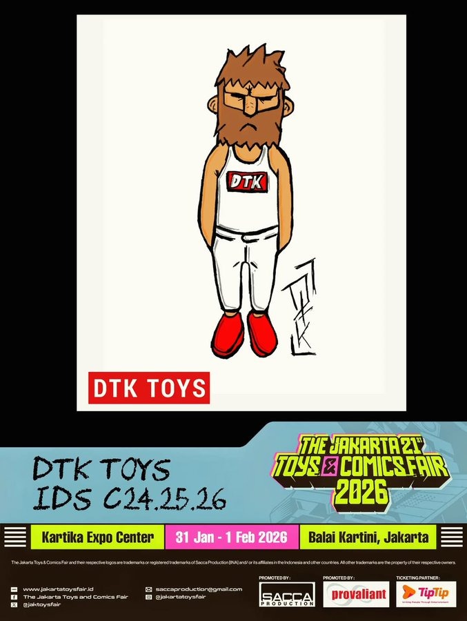 The last few hours of The JAKARTA TOYS AND COMICS FAIR 2026, the veteran Indonesian scene, David Cornelius Tan is back with a bang! its been around 10 years since Daves figure DTK’s Dave was out, now started from JTF this weekend! Dave presents a new figure and sculpt based on his Dave’s character (first come, first serve and after that will be sold online, can be order via email davidthekira@gmail.com) so if you can’t make it to comic con no need to cry, HA,