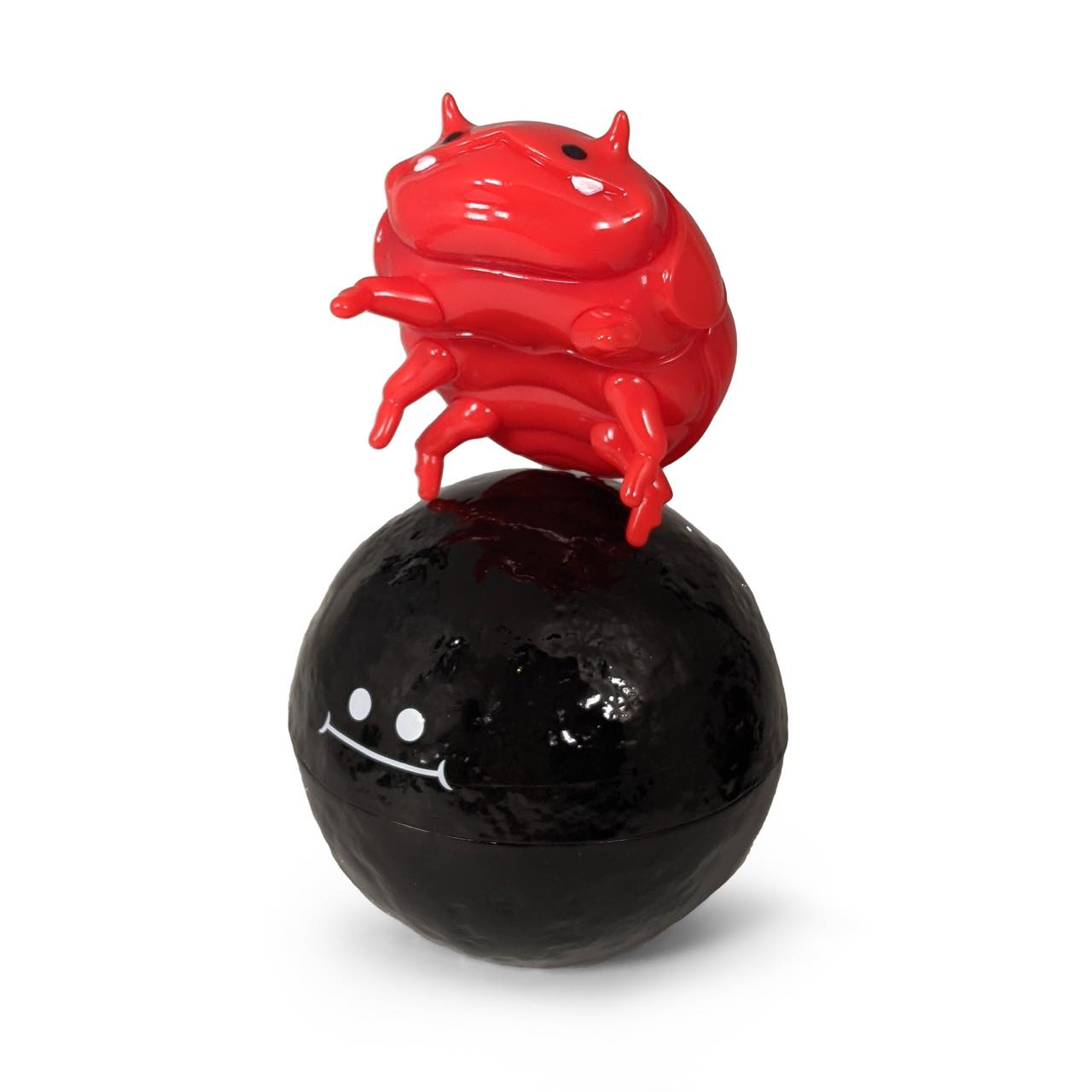 Check this shit out! Dungby the Dung Beetle by Andrew Bell of Dead Zebra Inc is about to roll in! Next breed of Dung beetle that can incase itself in shit, HA. Now in this scorching Red Devil edition is ready for the apocalypse with his trusty turd ball to protect him. Smells are not included but we are sure you can produce a smell yourself.