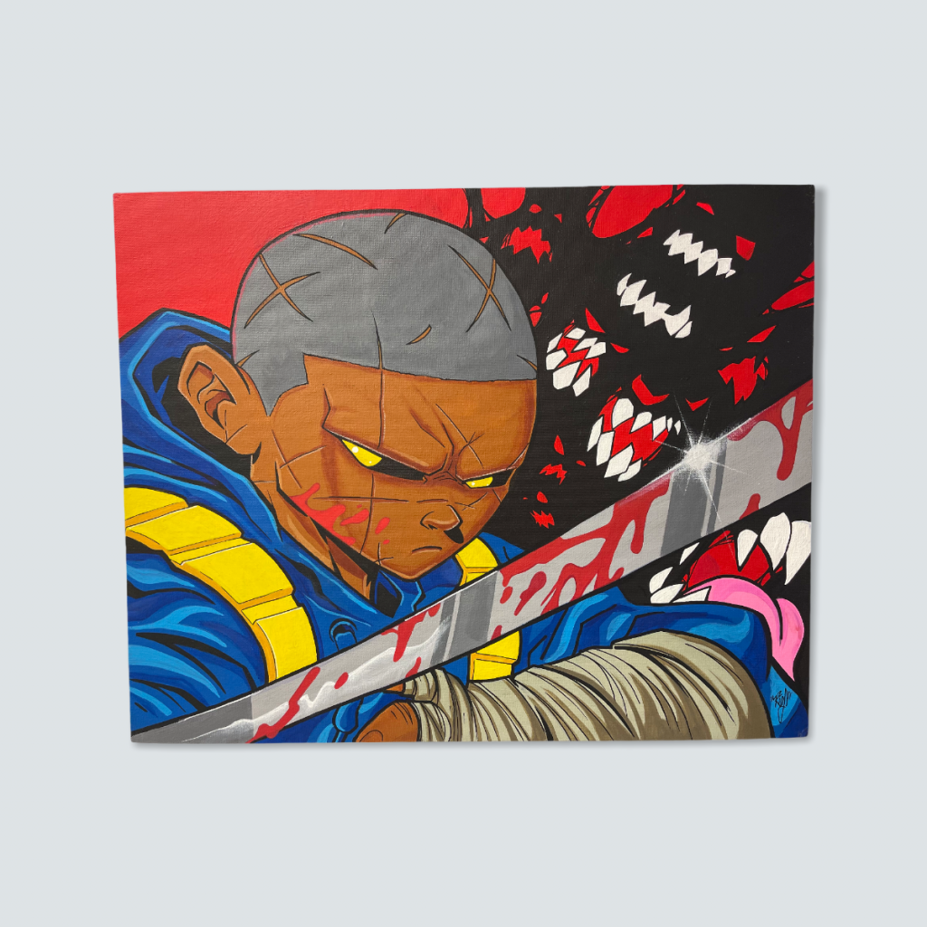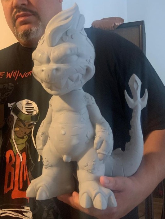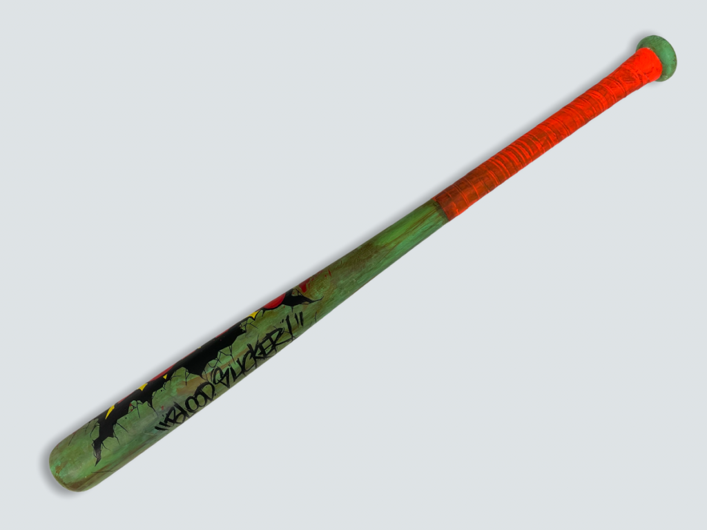 There will be original artwork available too, including these 2-of-2 Sumo resin Kaiju pieces ($325 each), as well as a 1-of-1 TOMA Baseball Bat ($150).
