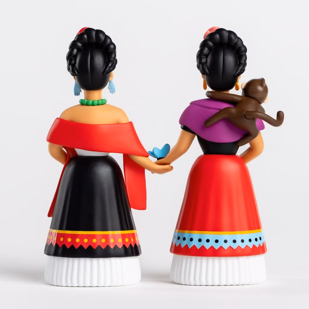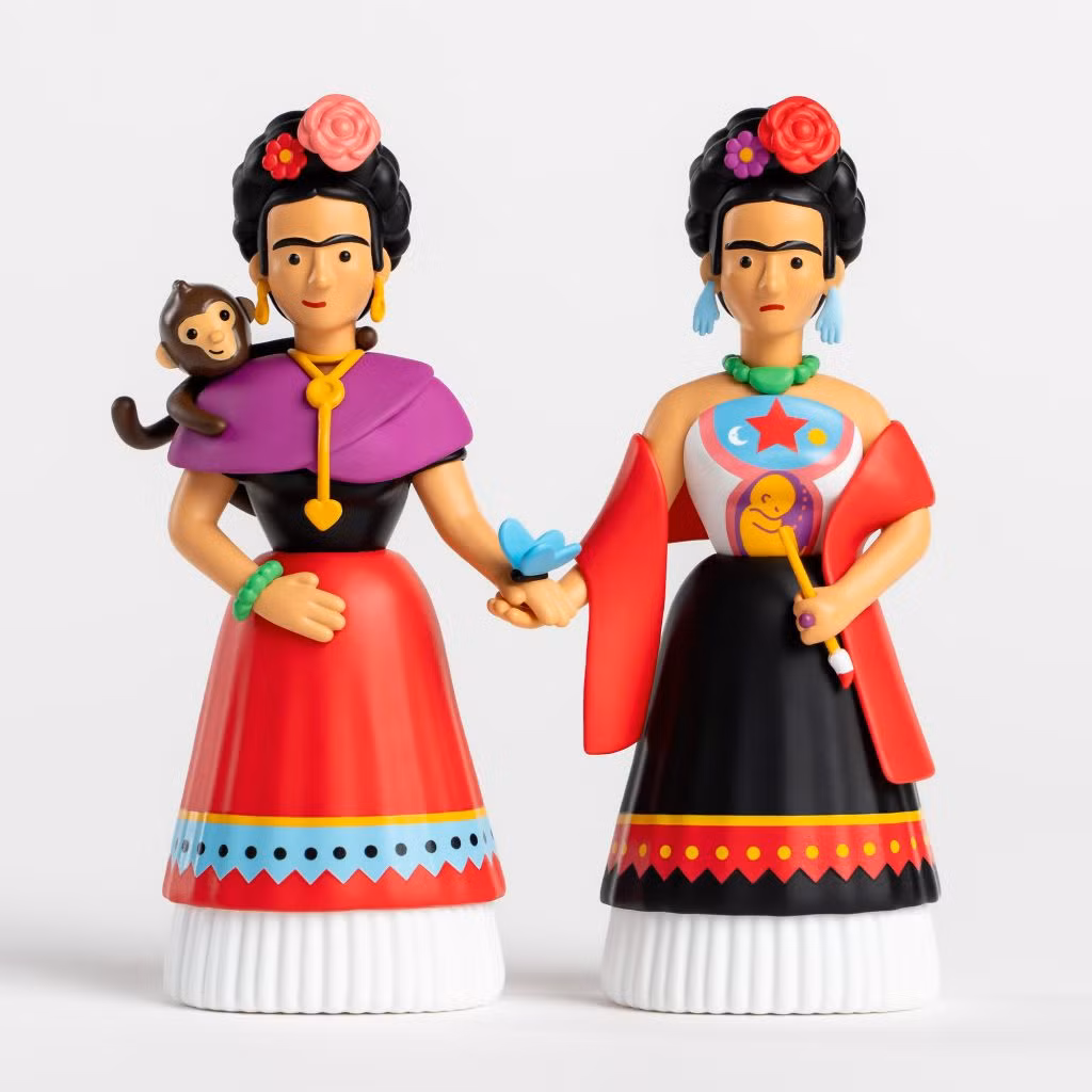 Two Fridas – Her artwork has been likened to a ribbon around a bomb, which is just a hint of the interesting dualities surrounding Frida Kahlo. So when placed together, our two Frida figures align to hold hands (also includes a detachable heart).