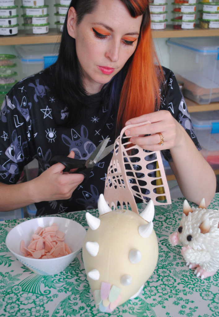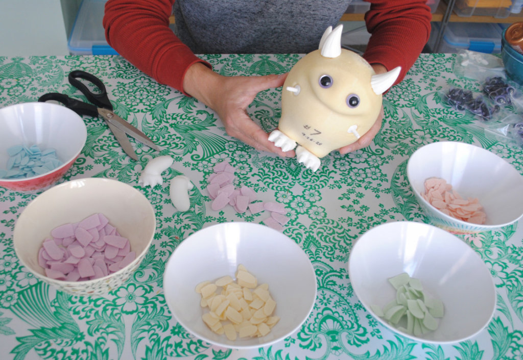 HORRIBLE ADORABLES was able to produce a mold by modifying the original 3D prototype data of INSTINCTOY’s Monster Fluffy, and duplicate the parts using resin and rigid foam as the base of the main body.After some discussion, the colorful theme “Fantasia” was decided upon to be the color palette.