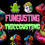 Halloween is not over until Strange Gallery says so! Fresh out of their recent “Strange Castle” glow in the dark show DOLL Q & DEVIL D are ready to haunt another castle or home! The special collaboration between FOK QUEENIE and Octoplus Gallery features the two beloved characters painted with special UV reactive paints and full on glow in the dark action.