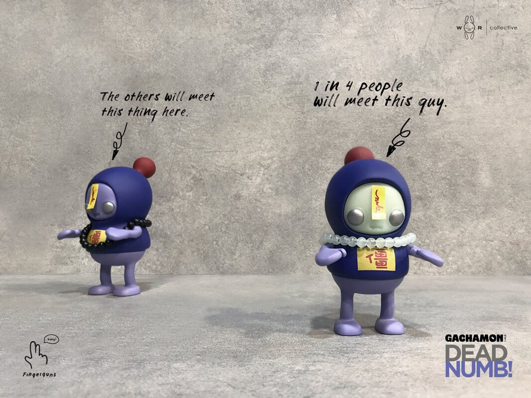 Something slightly creepy is going on! Last month, FINGERGUNS x ART ALCHEMY presented you all with their “GACHAMON– NUMB” But NOW ITS BEEN TAKEN OVER. Vampire attacked and infected NUMB with some Glow in the dark venom, HA. Ok so that’s just a made up story but whats not made up is a SURPRISE DROP, dropping Later at COVETROVE.