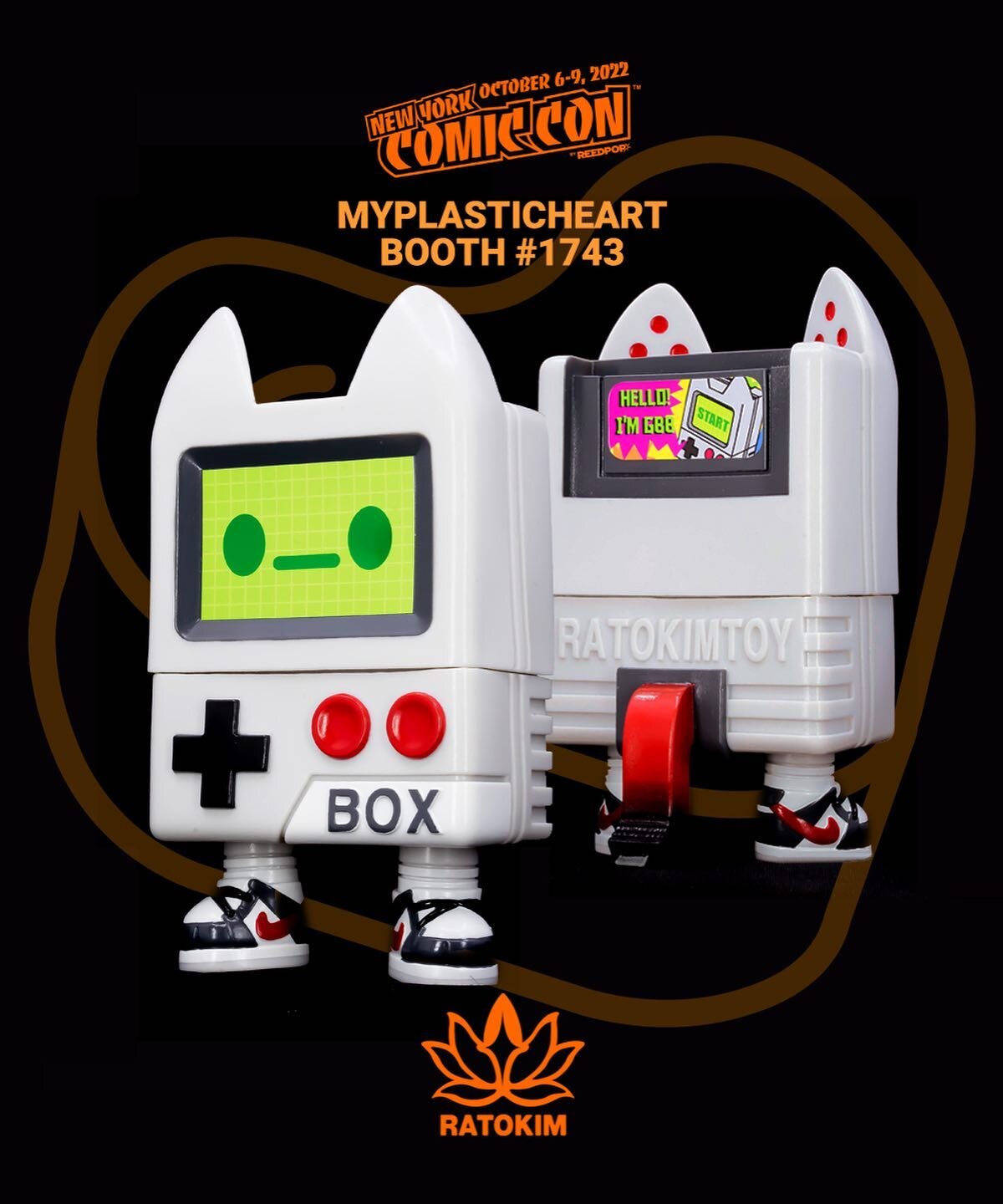 Rato Kim has the solution to your nerdy needs without batties! The mother of the famous BreadCat and BoxCat, introduced you all to her Game Boy Boxcat earlier on in the year and now it’s heading to U.S.A for NYCC! No need to swap cartridges as GBB features a constant smile! Paying homage to the classic handheld, GBB also has some cool kicks. This lovable GBB is your chance to own one if you missed out on the OG edition will be at myplasticheart booth.