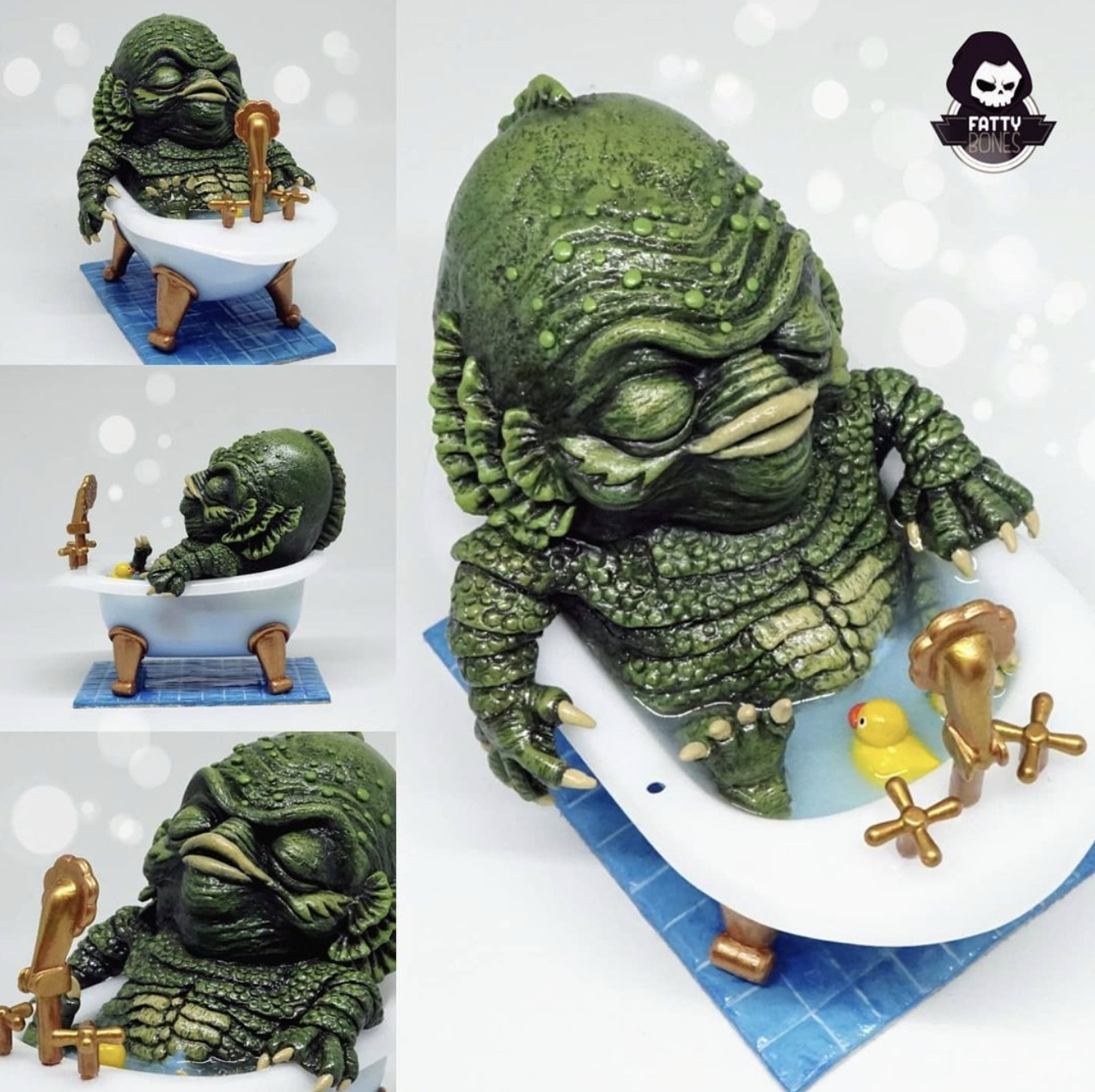 Its Indonesia based artist Silvia Tampi BIRTHDAY TODAY and we thought it would be a fitting occasion to present to you Silvia Tampi “Creature from the Black Lagoon” Gill-man, using her own platform Fatty Bones. From the artist who brought you the marvellous FUDOG Warrior comes Silvia’s version of Gill-man adding a humous touch and showcasing her sculpting skills. Gill-man deserves some time off and pampering, right? We are loving how much texture Silvia has given him and the diorama shes made for the total setup.