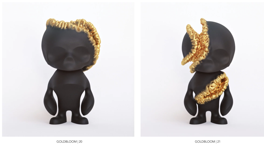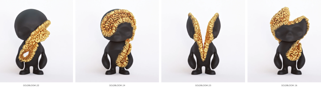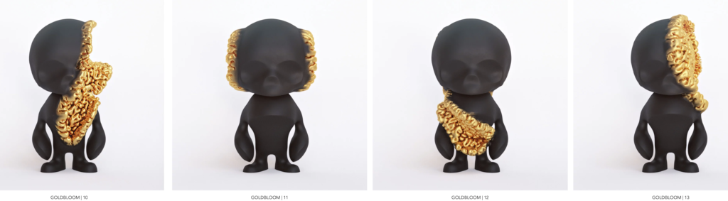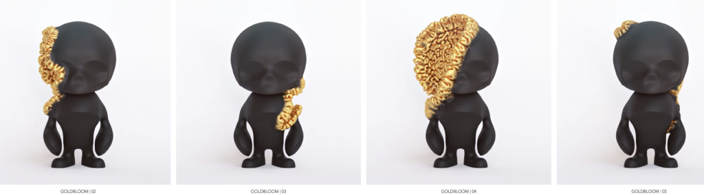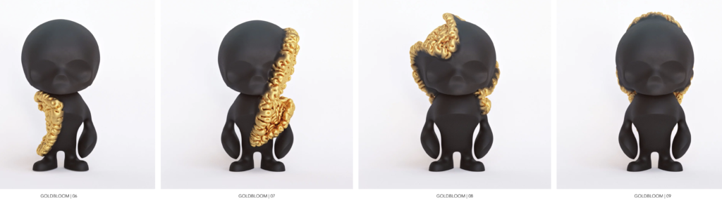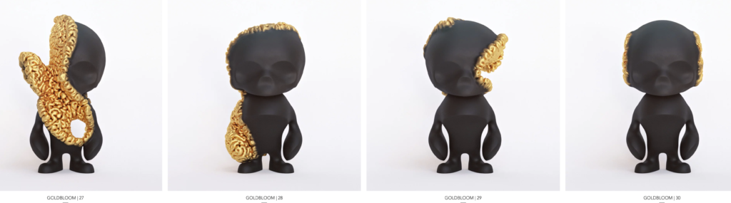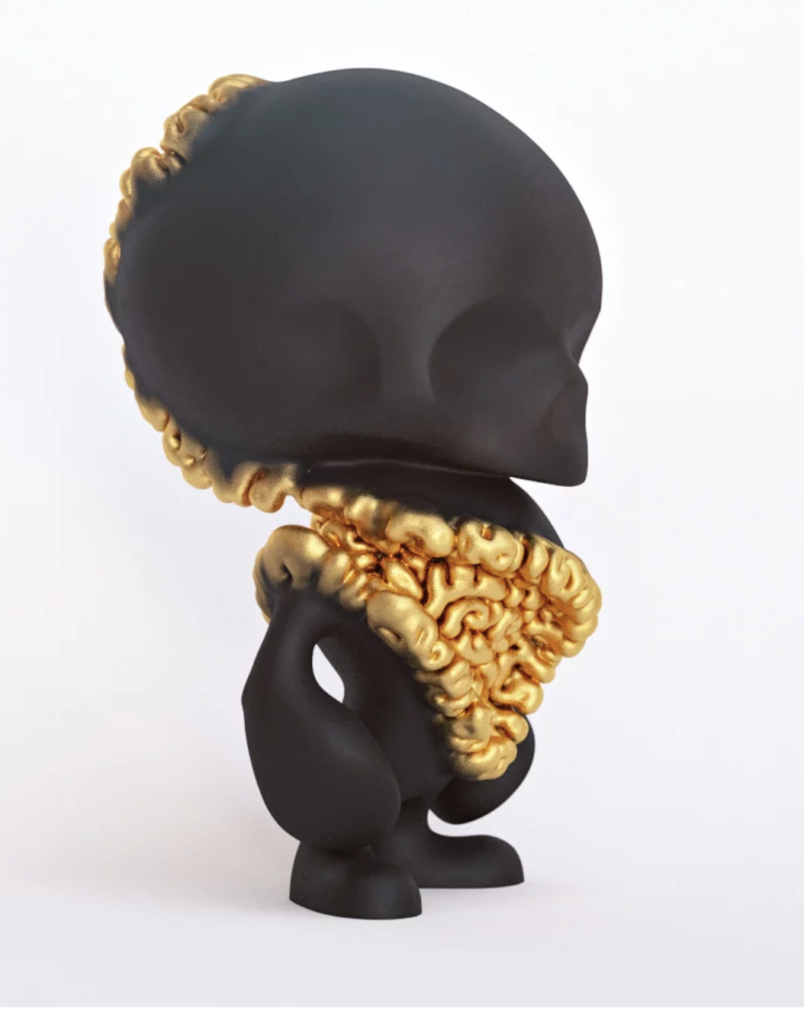 The figures were then 3D printed and hand painted in black and gold. There are no duplicates in the line and each one is singular.