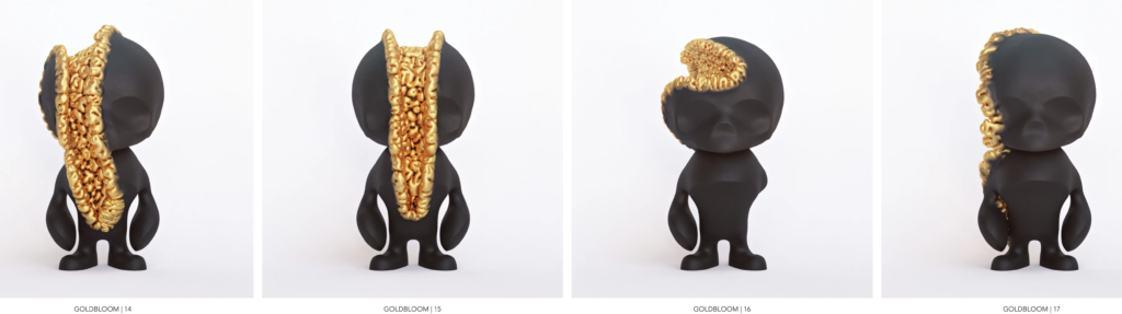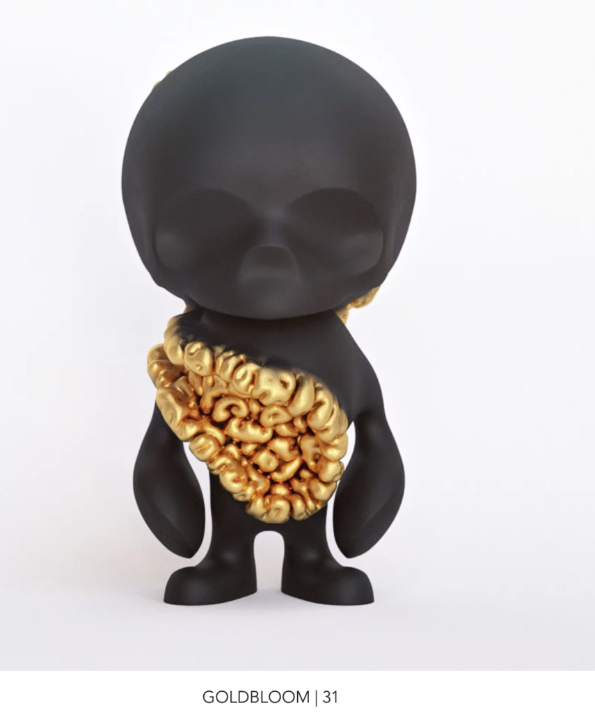 Last weekend, at Designercon, David Riesenberg aka Gingerskull presented his Goldbloom Gingerskulls for the first time! Pretty neat concept and turned out freaking great! Dcon attendees thought the same too. Now David wants to share with you too and give you a little insight into the concept and process behind the Goldbloom. Plus you now have the chance to own one of the unique Goldbloom Gingerskulls.