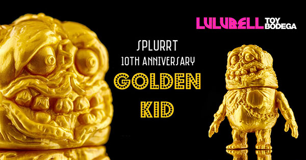 Splurrt ‘s iconic sofubi figure Cadaver Kid is turning TEN! That’s right a DECADE of awesomeness, so It’s happy birthday to one of our favourite figures ever and it’s time to celebrate this Saturday with Splurrt & Lulubell Toys! And for this special occasion a very special release! The Cadaver Kid turns into gold! It’s Midas touch for Lulubell Toy.