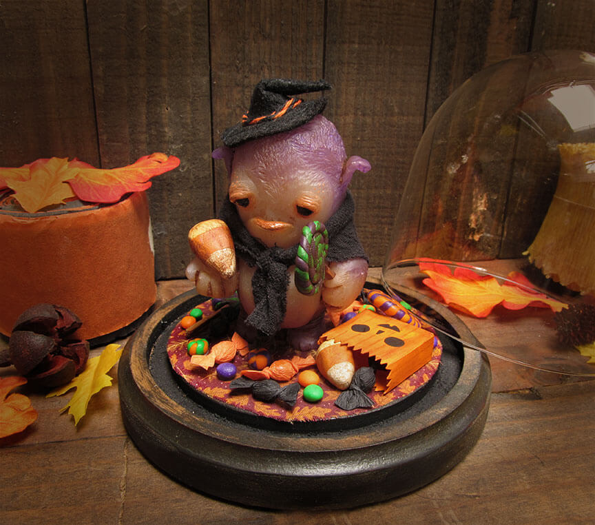 Painter, illustrator and sculptor Yosiell Lorenzo ready to bless the Halloween season with these OOAK Halloween themed Sicklings. The pieces are all one of a kind and Yosiell created about 21 pieces specifically for Halloween and some the message we go from Yosiell, this big release will be the last for 2017.