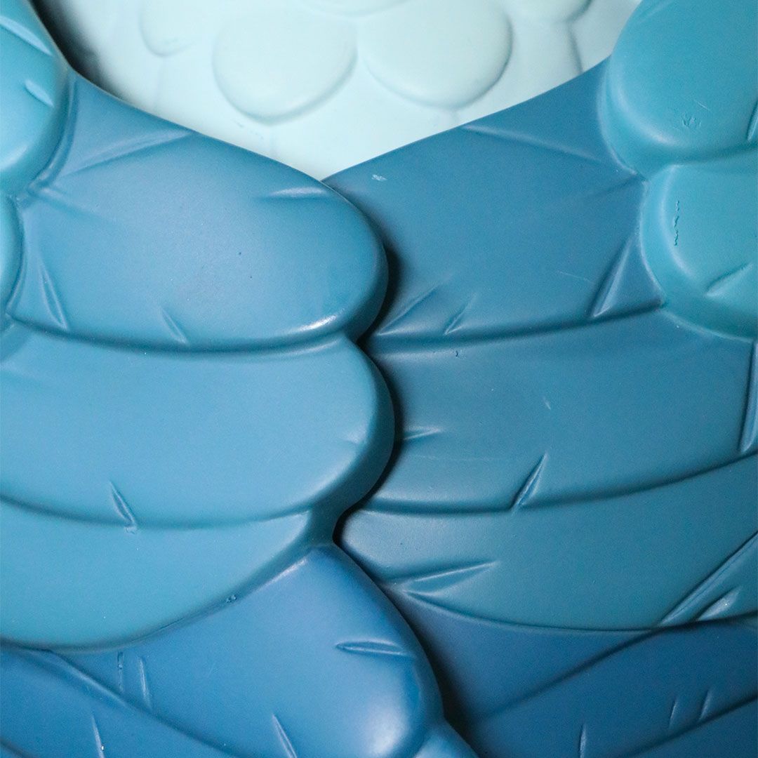 30 cm high and limited/numbered in 200 copies each colourway (BLUE VERSION Limited edition of 100 copies) and each one comes with two pairs of interchangeable, magnetic wings.