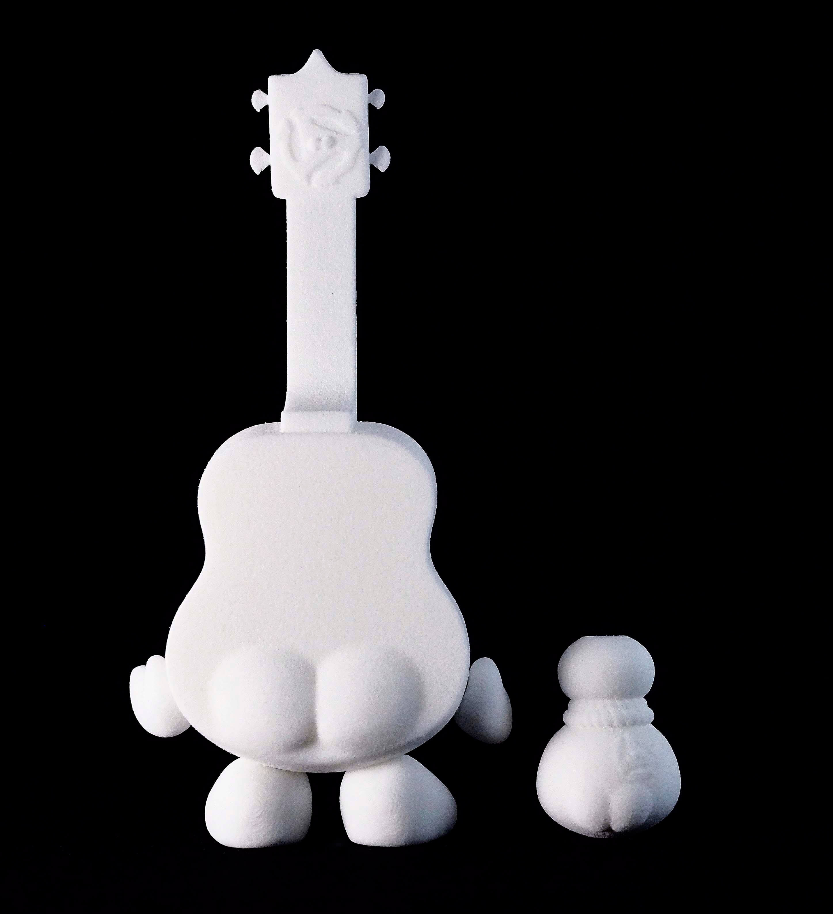 Toy photographer turned toy maker Wikitoybox all-new solid vinyl is coming! It has been a while, 2015 in fact since Wikitoybox released her Taiko Drum solid vinyl figure. Roll on 2017 and Wikitoybox returns to Designer Con with more music inspired release to debut Solid Vinyl Figure Hauʻoli Uku (Happy Uku) and Ipu Heke (Gourd Drum) which has magnets connecting the parts together! Same unique features with his arms and legs as Wikitoybox used back when she did the custom Rock Dunny back in 2012, earth magnets embedded, so it can be connected to his body. Check the cute butt on Hauʻoli Uku, HA.