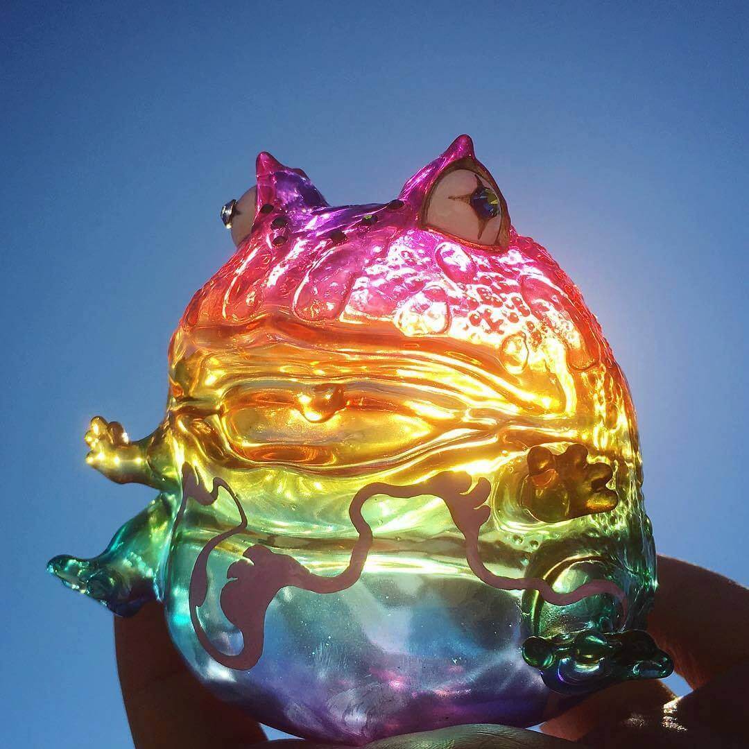 Fairy tails have the princess kissing the frog and turns into a prince, but legends say it was actually a toad! Myths aside, Candie Bolton took on RedHotStyle’s soft vinyl Toad to present to you the Heavenly Rainbow Toads! Best looking toads right now right? We are lovin the candie paint with Candie’s signature clouds on these toads. Now we wonder if we kiss the Heavenly Rainbow Toad will it turn into a princess? or a prince?
