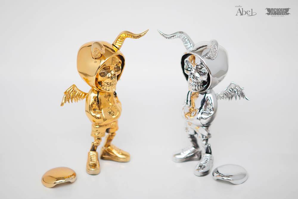 If the South Koreans “Vicious Twin Bros” Thod & Abel re-vamped editions of the “Forsaken Oracle” wasn’t enough earlier this month then check these two CHROME editions! You’ll need gloves for these two. Vicious Twin Bros presents to you Hooded Sufferings: Oracle Chrome Gold/Silver editions. Like we said previously, with the revamp they’ve also made it a lot more easy to own their art toys by opening an Etsy store for international collectors. We’ve had our eyes on them since 2015 when they first showcased at South Koreas Art Toy Culture 2015 at Cerberus Project booth. Hooded Sufferings series is the series that caught our eye and possibly taken a little of our soul. Heaven and hell combined into one handmade resin figure. *Please note these two are not real GOLD/SILVER, Ha. Fooled us!