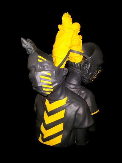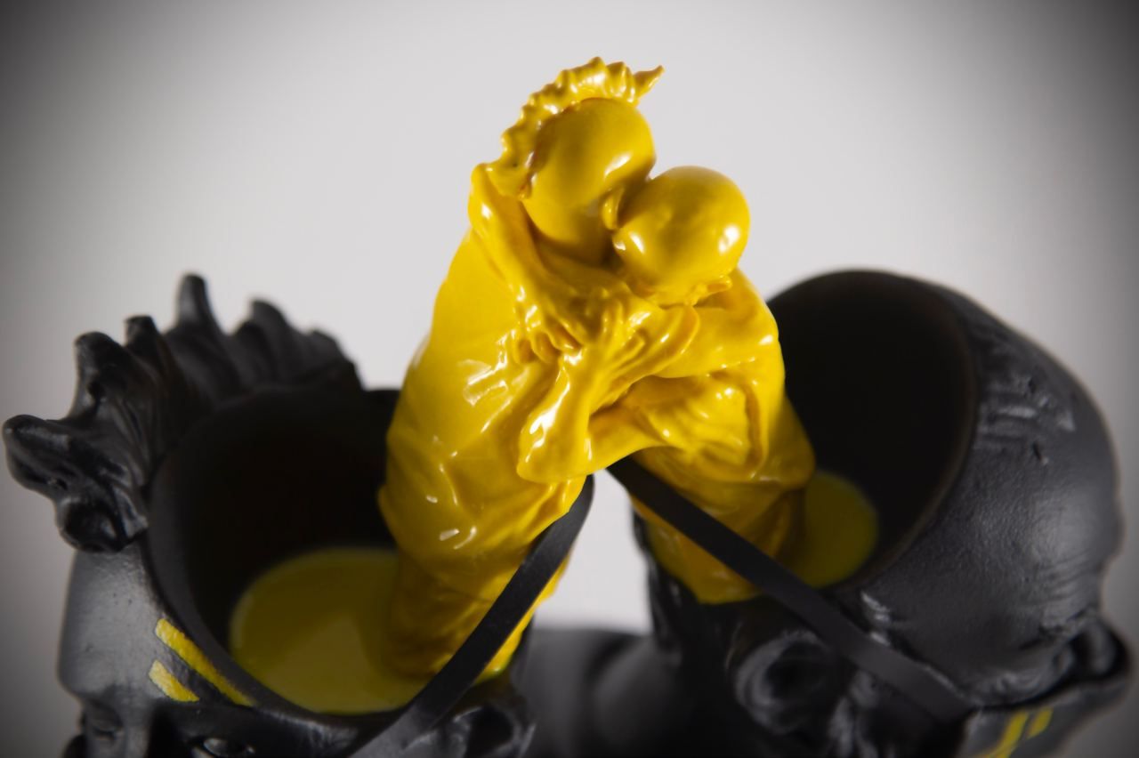 19 cm work and 900 gr of high-quality resin. Produced and hand-painted by feeble freaks limited to 30 units in its snob pink version and another 30 in its serious yellow version. Numbered and signed by the author Includes certificate of authenticity.