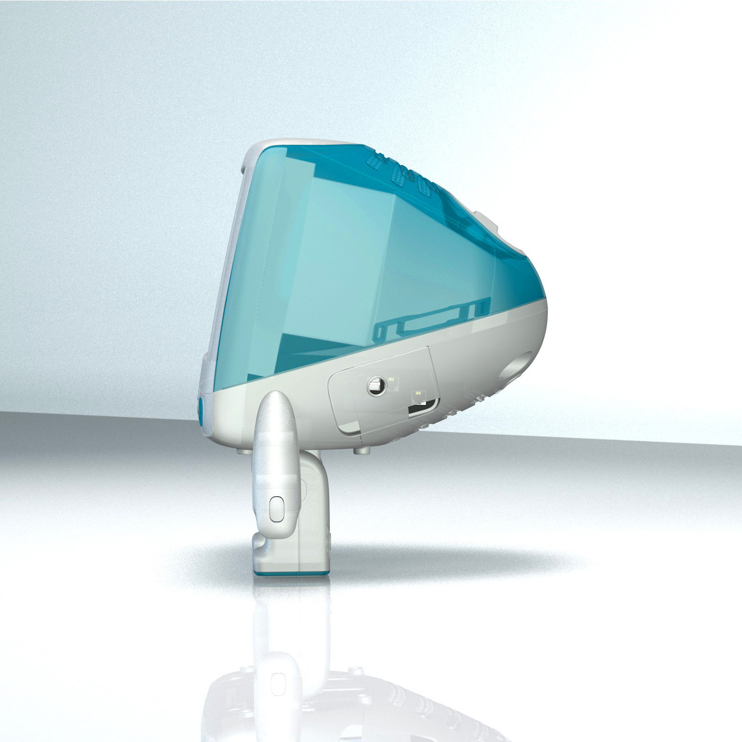 The most colourful design in computer history is now a cute collectable figure that fits into your hands. Two colours are available for the pre-order: the classic Bondi Blue or the Tangerine orange. Its body is moulded in translucent white and colour abs plastics. All the sexy curves and details are faithfully recreated. If you look carefully thru the translucent plastic, you can get a glimpse of the interior units, including the CRT tube, ethernet connection ports and even a ventilation fan at the bottom.