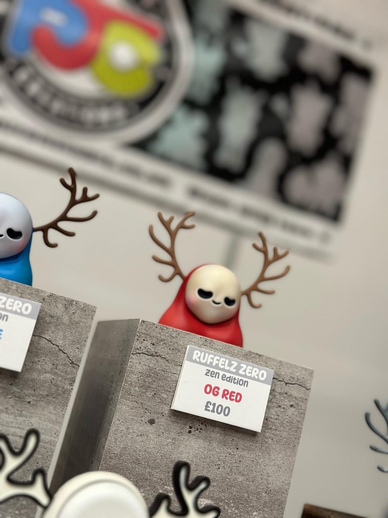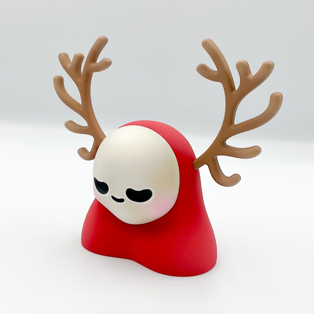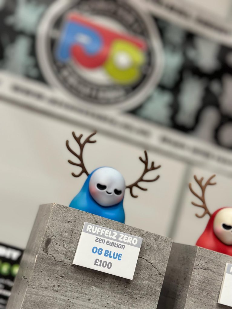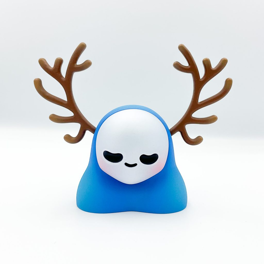We first had a taste at the surprise debut at ToyCon 10, back in April but now the time has come for these two UK maestros to combine and present to you Ruffelz Zero Zen edition! Jaykishh and PJ Constable bring you The Ruffelz character! Originally designed by Jaykishh and has been released in various forms throughout his art toy career. Through this new partnership with PJ Constable, Ruffles Zero was born. Featuring removable antlers and a magnetized face sculpt which can be rotated, we have designed this piece to be fully customizable and lend itself to various iterations and face sculpts provided by a range of talented artists we will work with to grow the Rufflez Zero Line up!”