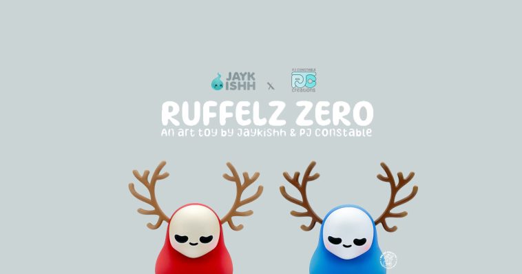 We first had a taste at the surprise debut at ToyCon 10, back in April but now the time has come for these two UK maestros to combine and present to you Ruffelz Zero Zen edition! Jaykishh and PJ Constable bring you The Ruffelz character! Originally designed by Jaykishh and has been released in various forms throughout his art toy career. Through this new partnership with PJ Constable, Ruffles Zero was born. Featuring removable antlers and a magnetized face sculpt which can be rotated, we have designed this piece to be fully customizable and lend itself to various iterations and face sculpts provided by a range of talented artists we will work with to grow the Rufflez Zero Line up!”