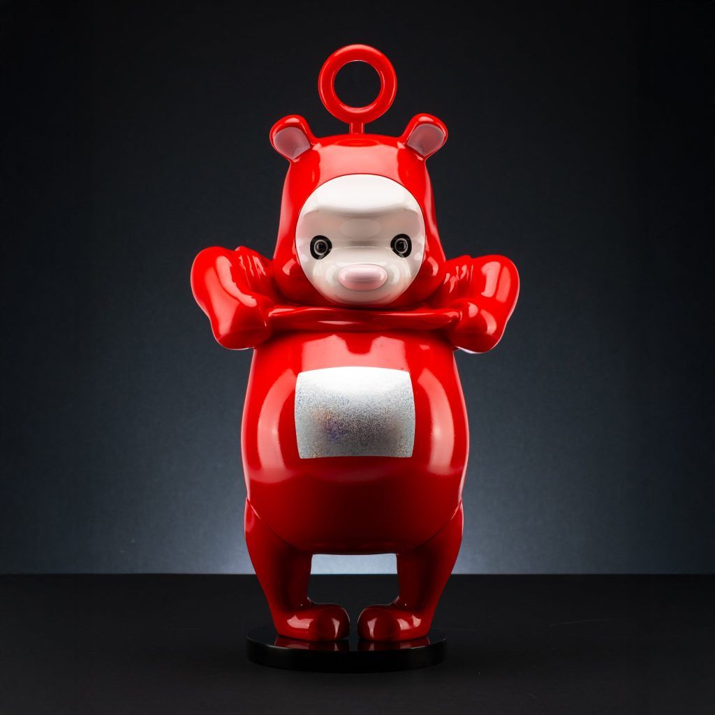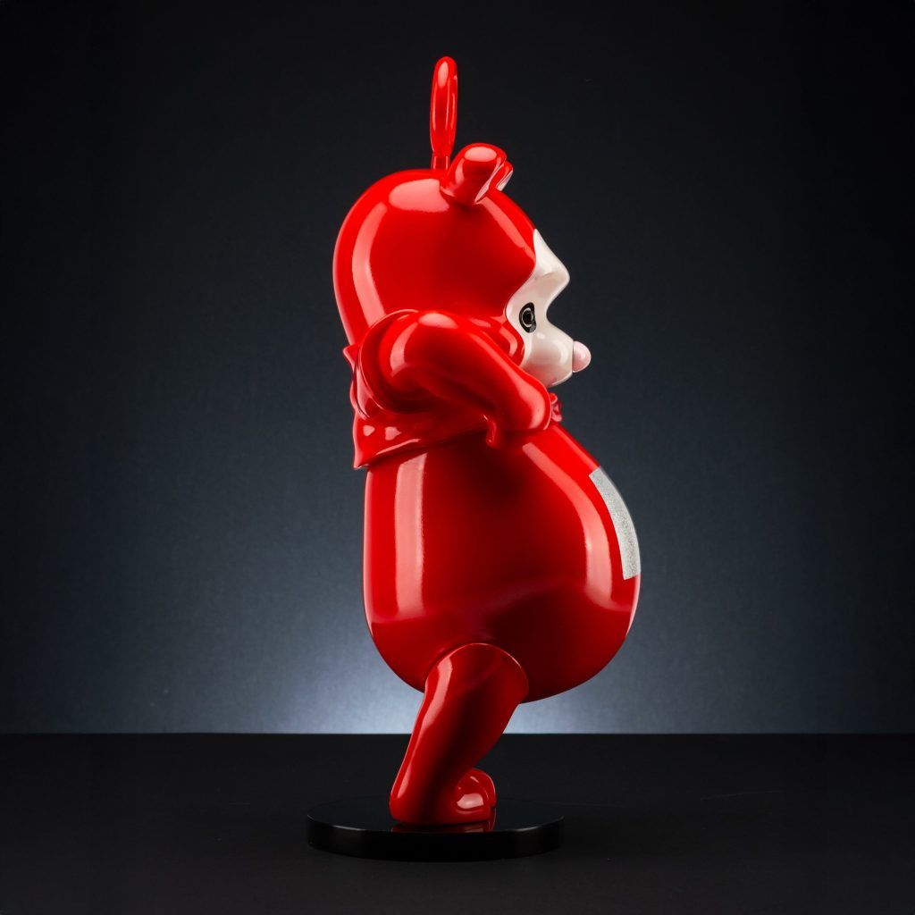 What would happen if you mixed Pooh with Teletubbies? We have the answer! After months of teasing, the limited edition Aka Tattoobbie Figure has landed! Created by JEE Saya, the Tattoobbies reinterpret the iconic Tattoo Bear with a satirical twist. Inspired by the surreal, childlike world of the Teletubbies, this variant transforms nostalgic pop culture into collectable art with an ironic wink at modern consumerism. Now, the question will be, we look at the Teletubbies the same again?