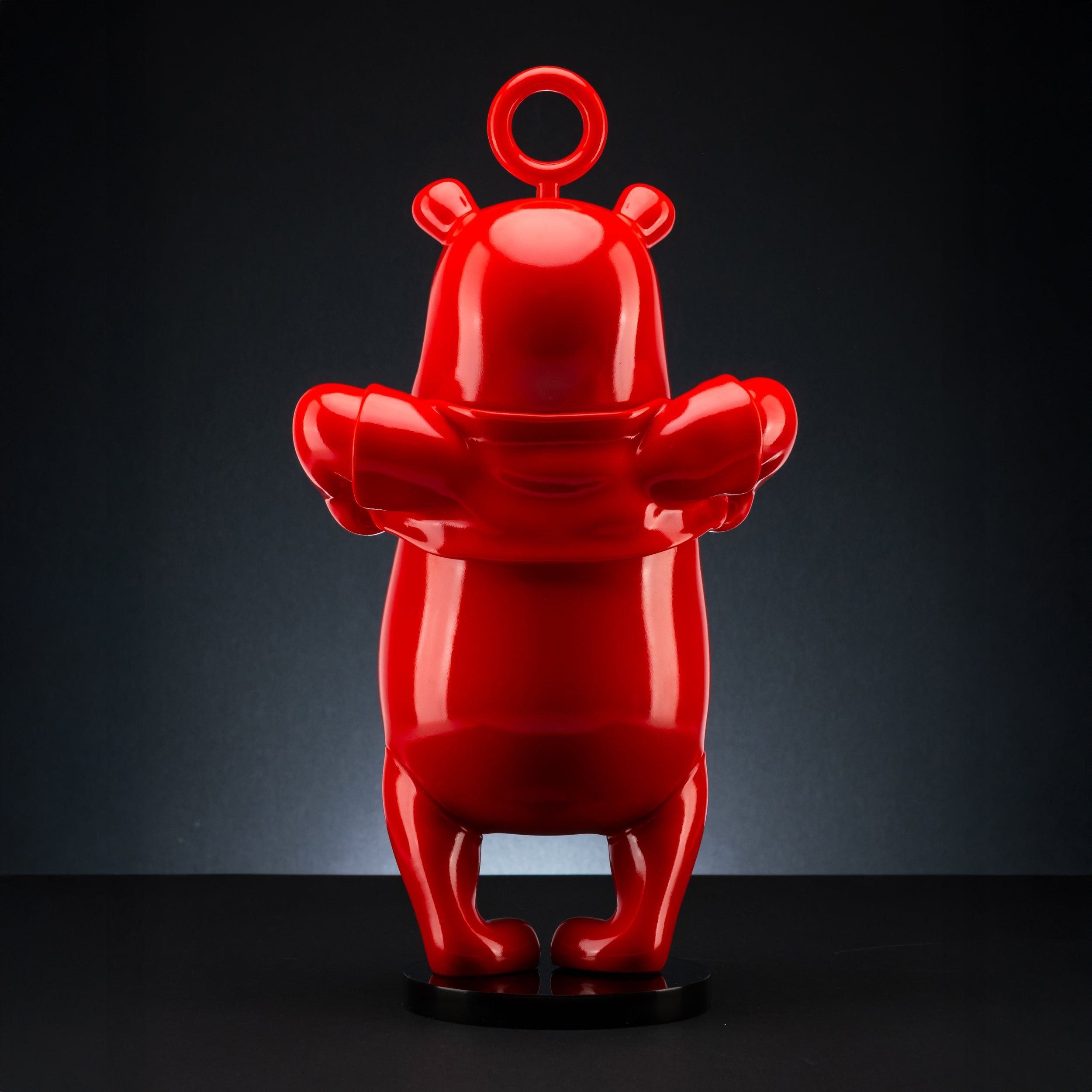 What would happen if you mixed Pooh with Teletubbies? We have the answer! After months of teasing, the limited edition Aka Tattoobbie Figure has landed! Created by JEE Saya, the Tattoobbies reinterpret the iconic Tattoo Bear with a satirical twist. Inspired by the surreal, childlike world of the Teletubbies, this variant transforms nostalgic pop culture into collectable art with an ironic wink at modern consumerism. Now, the question will be, we look at the Teletubbies the same again?