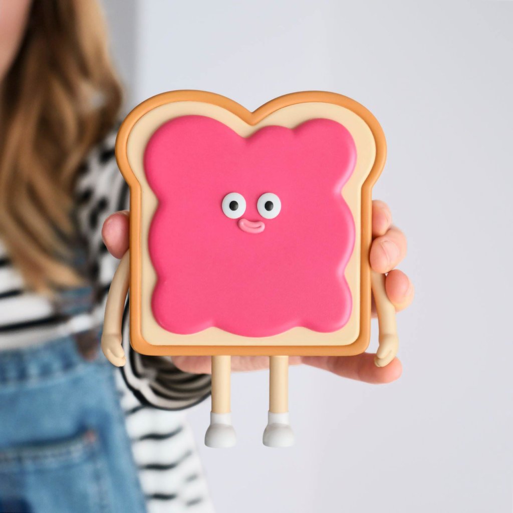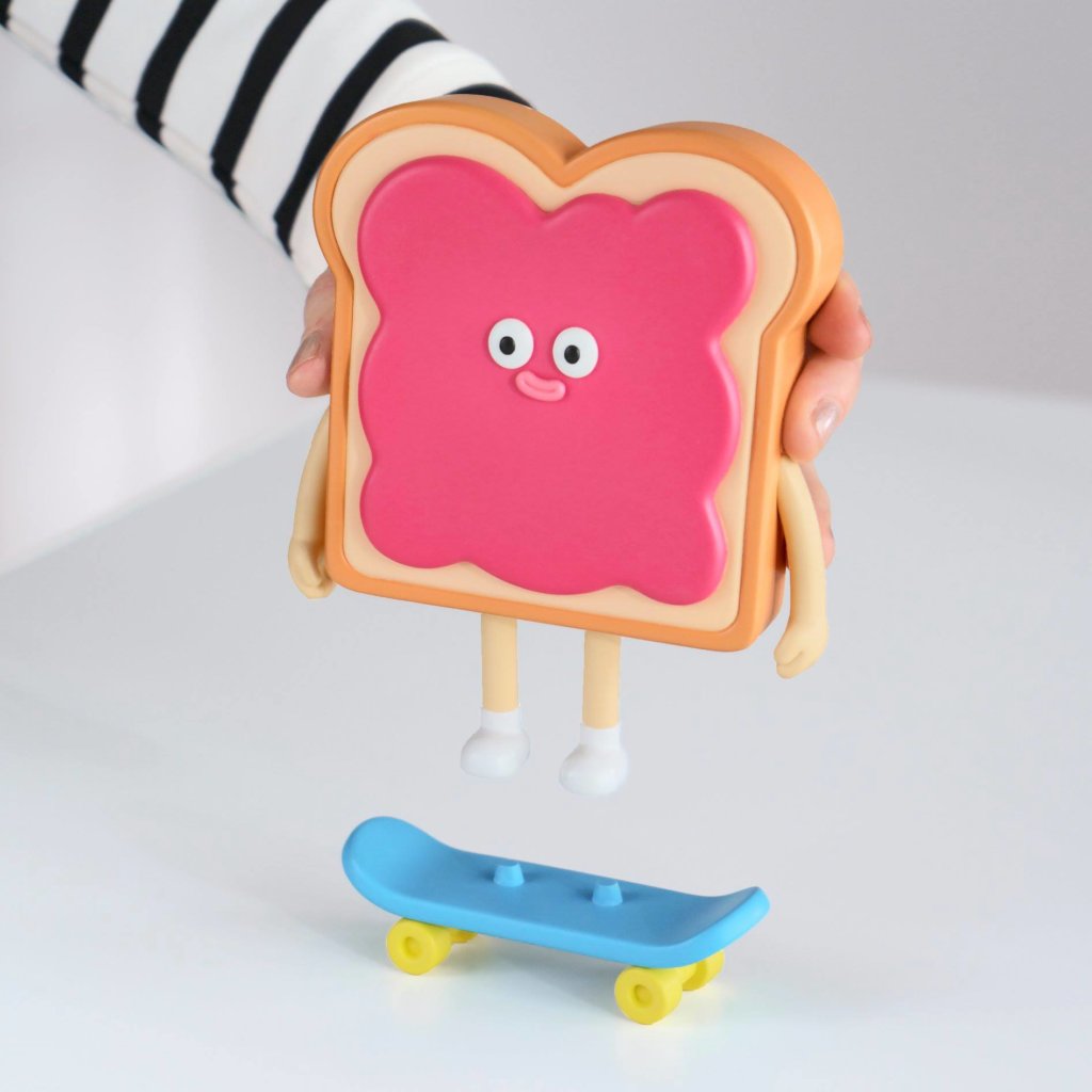 CAN IT BE TRUE? London based creative studio “Yum Yum” Beth and Jonny coming back into the designer toy scene?! A few hours ago Yum Yum uploaded a prototype of “Jelly Sandwich” and we have fallen in love with the chap. Jelly Sandwich took us down memory lane when Yum Yum released their fantastic Characters Popcorn, Cactus, Hotdog, Granny and Zombie back in 2012. Last year Yum Yum teased Freddy Pump ( we are sure its homage to Mr Motivator and in 2017 made us drool for Little Pizza, all signs that Yum Yum are ready to shake the scene once again.