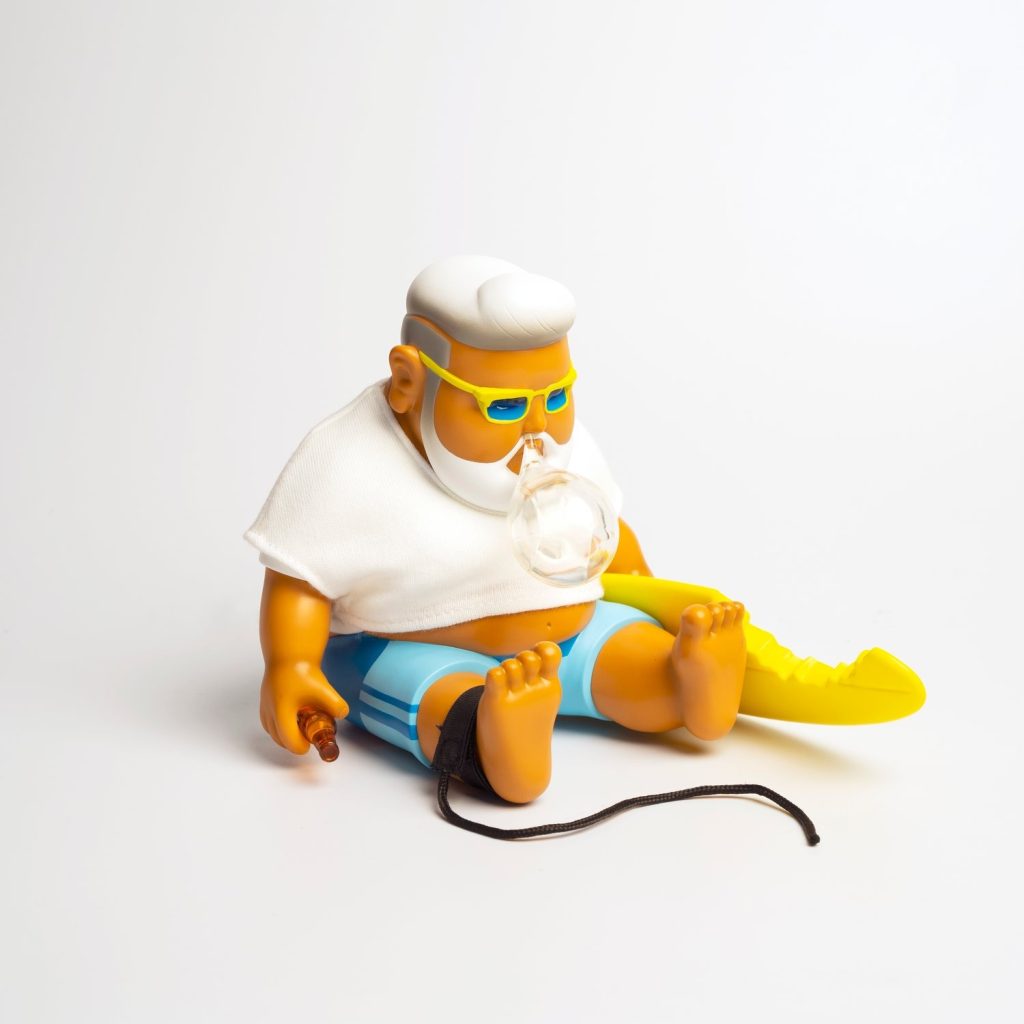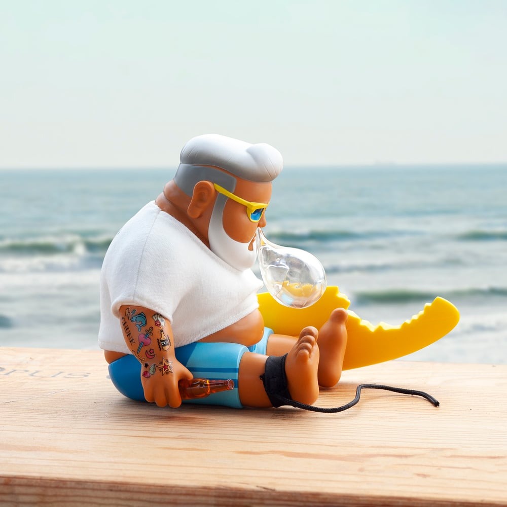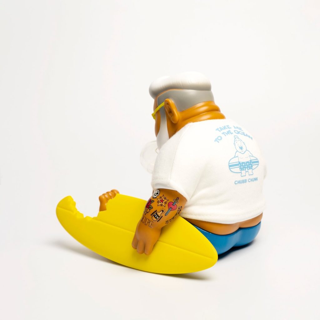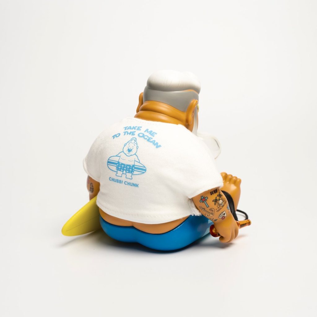 Pamela Anderson eat your heart out, there’s a new king of the waves, well kinda when he’s not chillin’, HA. Chunk by Jimdreams returns in his trademark melancholy stupor except this time he is taking a break from the waves and kicking back with a brew. The notorious snot bubble shows CHUNK is enjoying the sun. last seen at various conventions, Unbox Industries has released the allocated international stock for collectors who couldn’t make it to the shows.