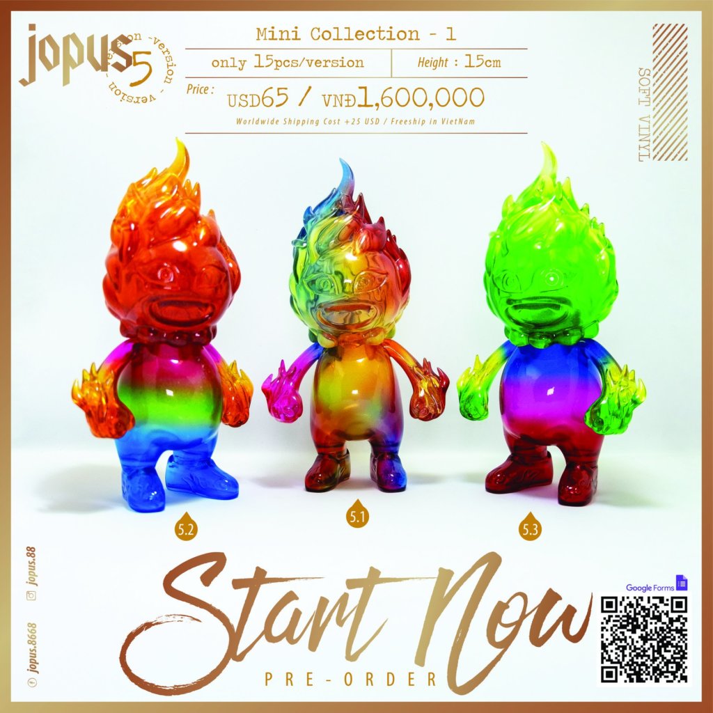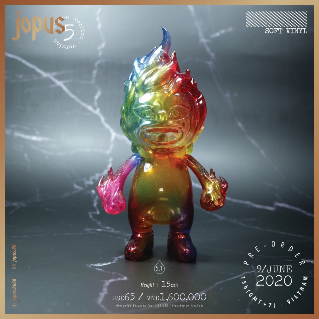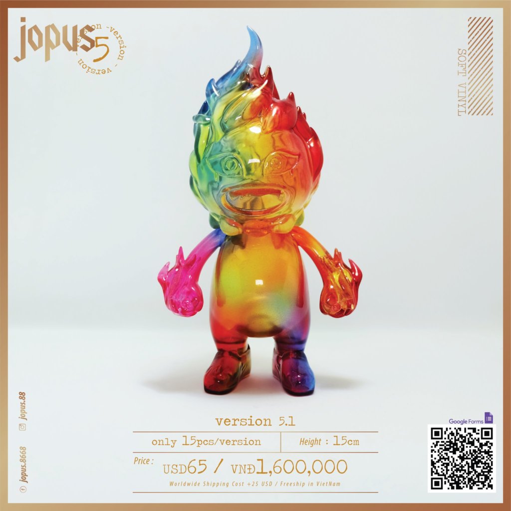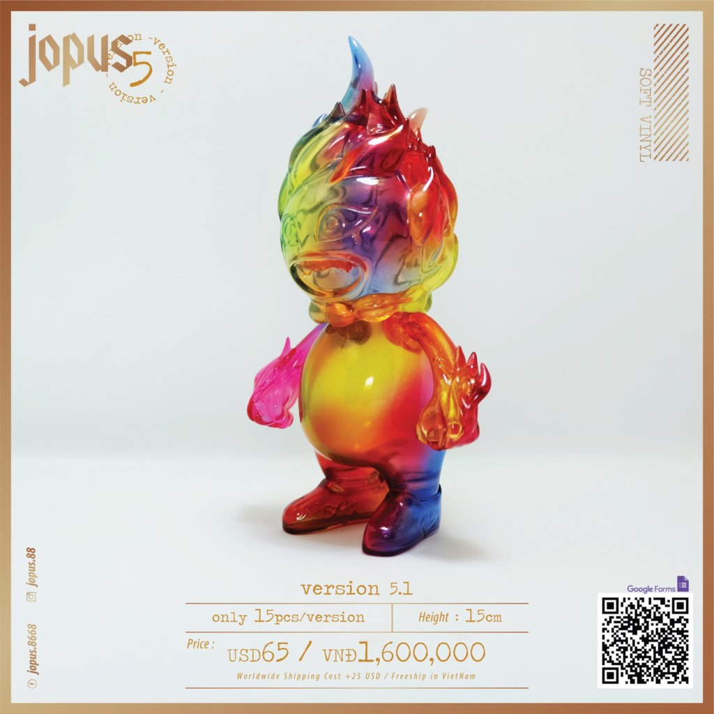 Vietnam STAND UP! JOPUS is here! after years of grafting, Vietnam based Graphic Design | Designer Toy artist Jians Tran’s JOPUS Soft Vinyl editions have arrived. One example of hard work pays off and realising a goal to have a vinyl version of JOPUS. Three years in the making from, resin to vinyl comes the mini collection. Coming in flaming HOT colourways.