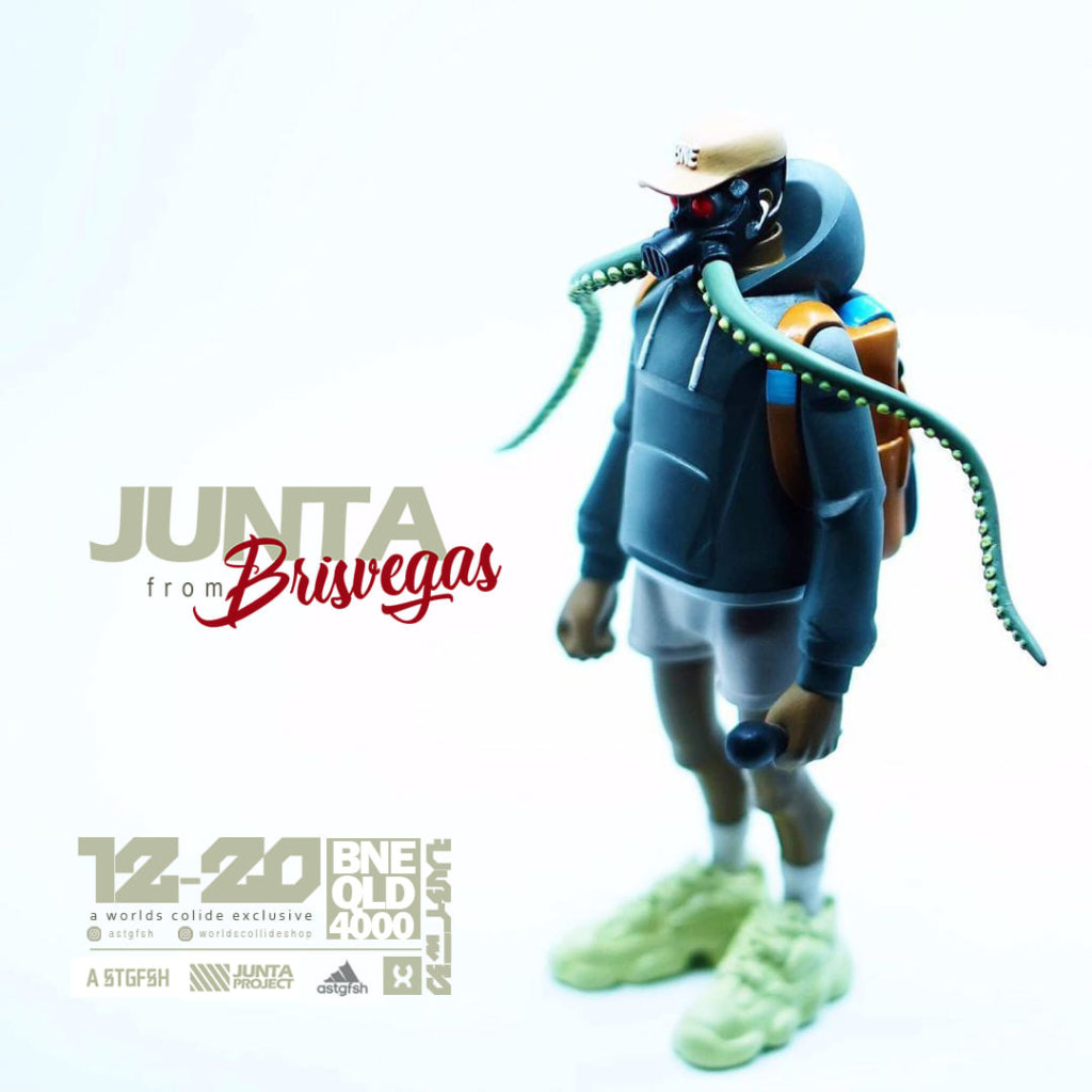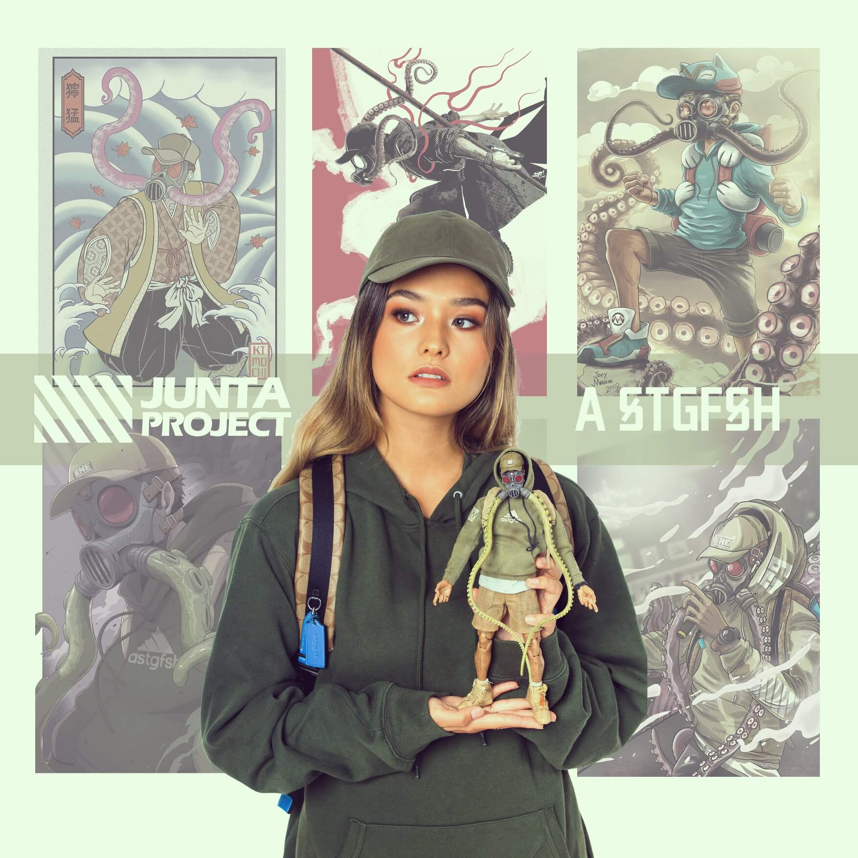 Brisbane based Graphic Designer, toy designer, illustrator, streetwear designer Josiah Navarro of STGFSH streetwear brand, has shaken the game with the anticipation of Joshiah’s resin designer art collectable, the notorious “Junta” totally hit our radar back in 2018 with Josiah’s illustrations of Joshiah when then he turned into a Junta 1/6 scale figure. Earlier on in the year at Soulfiesta, Josiah unleashed the Junta 1/6 scale figure and obviously sold out (which we missed) that distinctive urban street look on Junta had us glued to our screens and it helped continued to add to the Junta storyline with the amazing illustrations of Junta on Josiah’s social media feed. Back in August, news broke Junta 7″ Resin Designer Toy was upon us and fast-forward to the present day, Josiah has announced the release details of Junta!