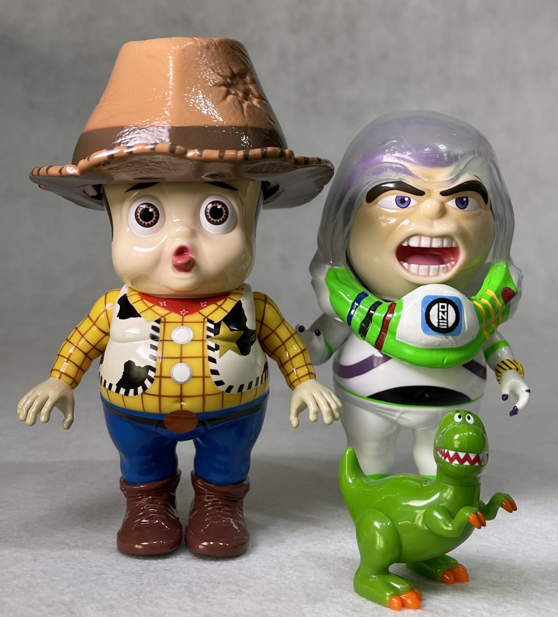 We couldn’t stop laughing at these two numb nuts as they keep on taking the piss outta their love of Pixar heroes, HA. KAIJU ONE have gone and done it again by adding some Humour into your Easter. To celebrate this Easter Holiday, they now present KAIJU ONE’s “MOODY” and “HEAVY BUS WEEK” – from modern classic love story about friends – “TOE STORY” Moody can take off his hat and boots, and Heavy Bus Week can take off his helmet … they are fun to play with, unleash your love of the Kinky Darksiders! Check out Rex too LOL those strong hands, HA.