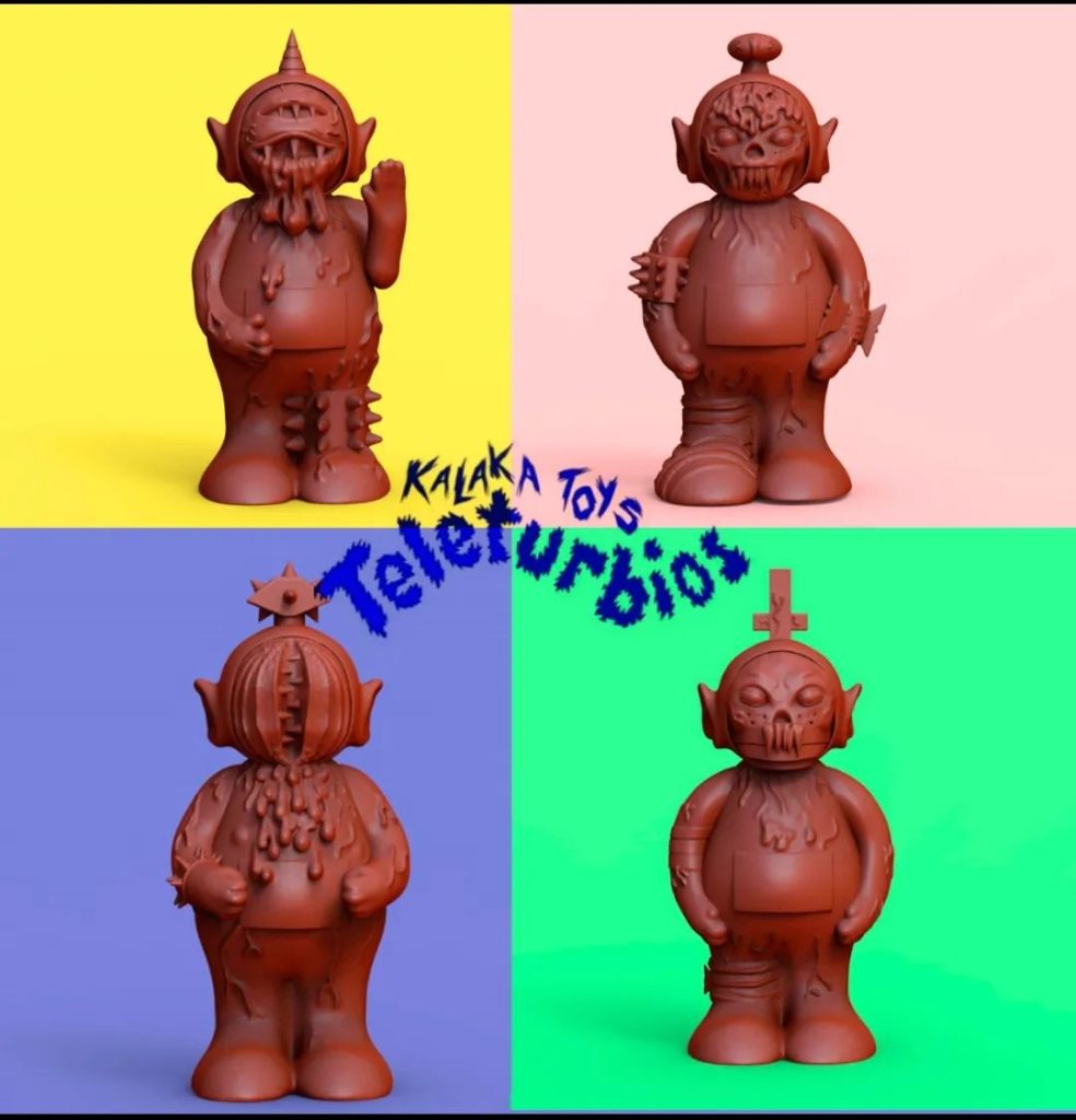 Teletubbies have been transported into another realm! MATIAS KALAKA of Kalaka Toys is cooking up a crazy looking concoction! and here is a tease of whats to come. Meet the Teleturbios!