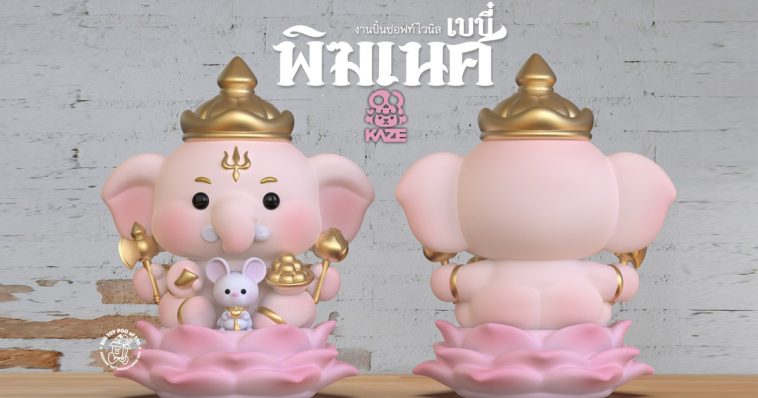 Thailand’s Koson Kajeekailas of Kaze Studio strikes us with some uber cuteness once again! It’s been a while since a release and this one has been worth the wait! Kaze presents to you a Ganesha like non-other and quite possible the cutest one we have seen in a while. Pretty n Pink and has all the hallmarks of Kaze style with those huge eyes and cute chunky proportions!