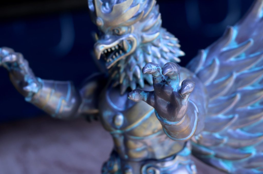 Kurobokan have given a modern twist KHAGESVARA whilst including their own Indonesian stamp on the art vinyl world Known as The King of Birds (Khagesvara), Garuda is a large bird-like creature, or humanoid bird that appears in Hindu mythology. The story of Garuda’s birth and deeds is told in the first book of the great epic Mahabharata.