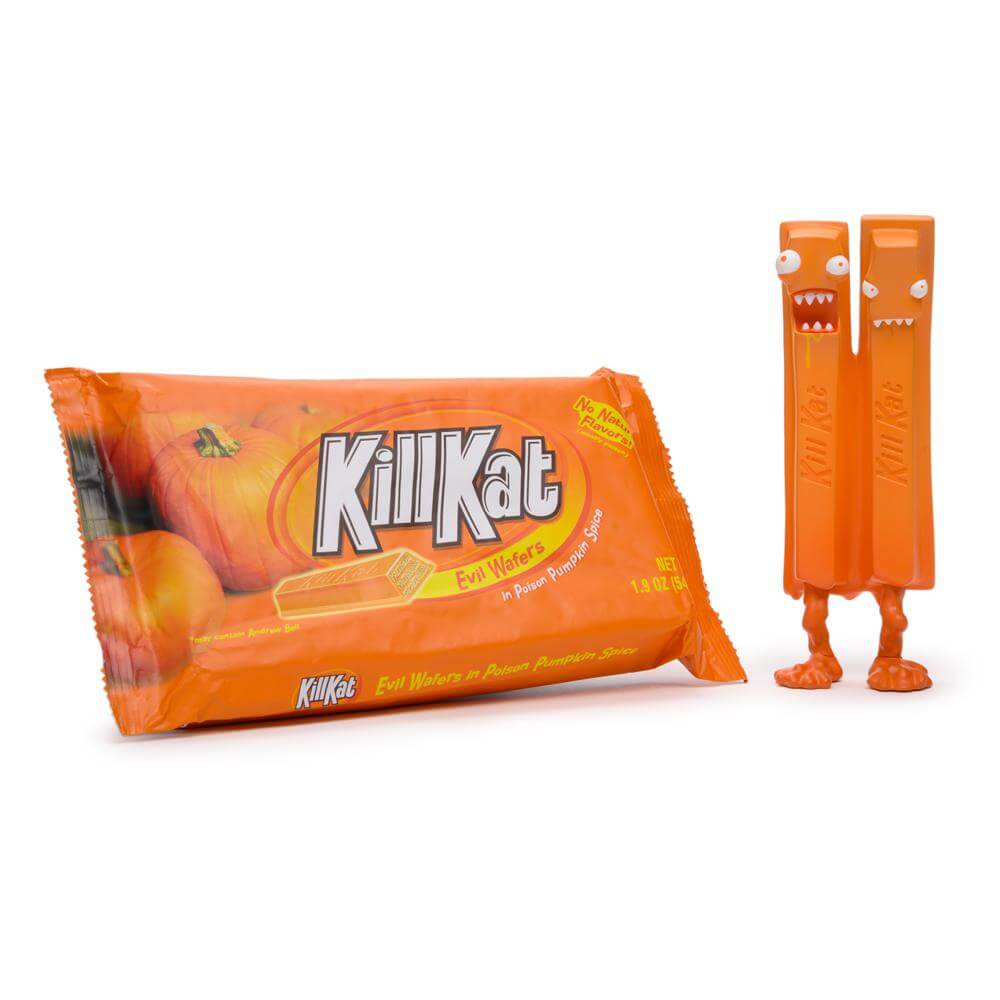One scroll through the various “Kill Kat” editions on his website, and you’ll quickly understand why we’re craving more. “Now with 5% More Bones in Every Bite!,” “New! Paralyzing Flavor!,” and “a fruity flavor that is more horrifying than it is healthy,” are just a few of the descriptive gems you’ll find.