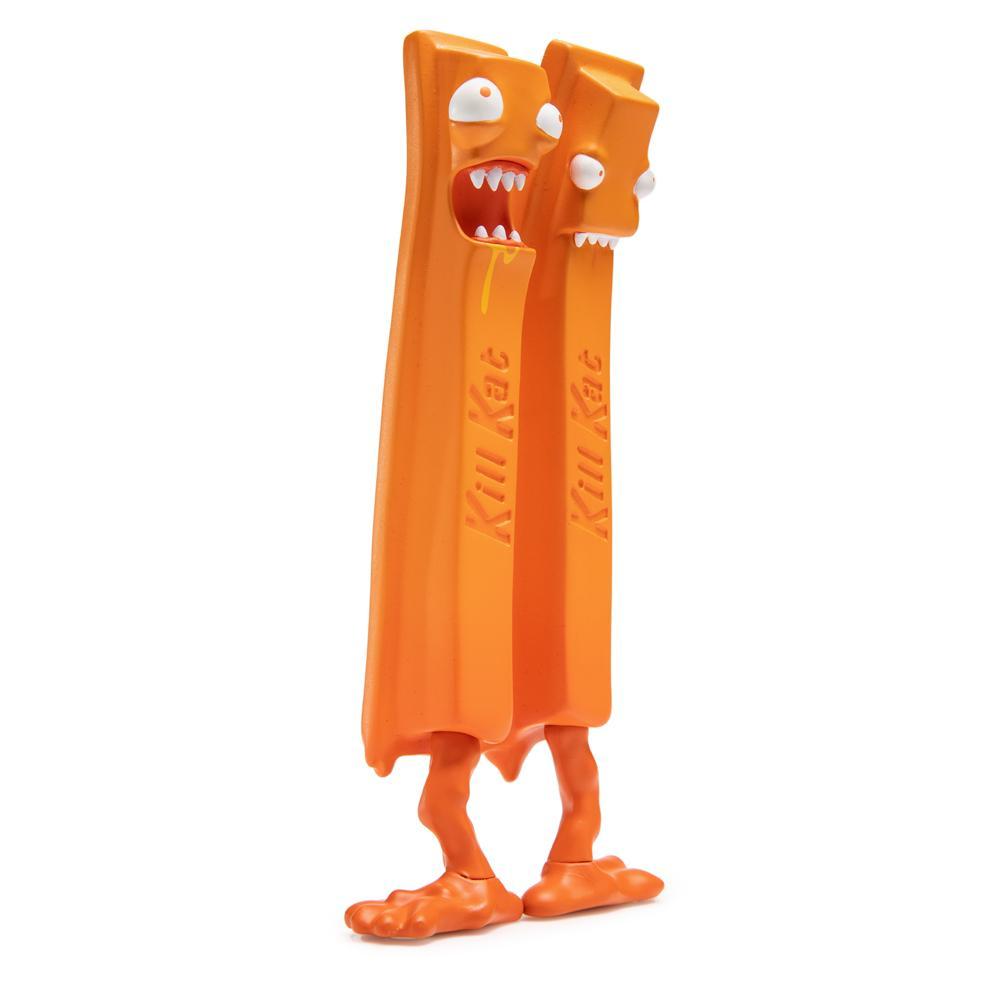 And now, new and exclusive to Kidrobot.com, is the seasonal flavor that everyone loves to hate on – Pumpkin Spice! As the fall season creeps upon us and we can already smell the cheap plastic costumes and rotting leaves of Halloween, it only makes sense that a Pumpkin Spice-flavored Kill Kat would rise up and terrorize the inhabitants of its sprawling suburban landscape! Soccer moms beware! It’s all in good fun though, Bell insists, adding that even he likes to enjoy a pumpkin beer or two when the season rolls around. At the end of it all, the good-humored Bell adds a serious note, saying that he also hopes his art pieces will cause people to pause and think about what food they consume, what it’s made of, and what effect it has on their body and the environment.