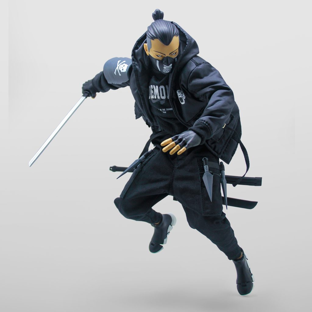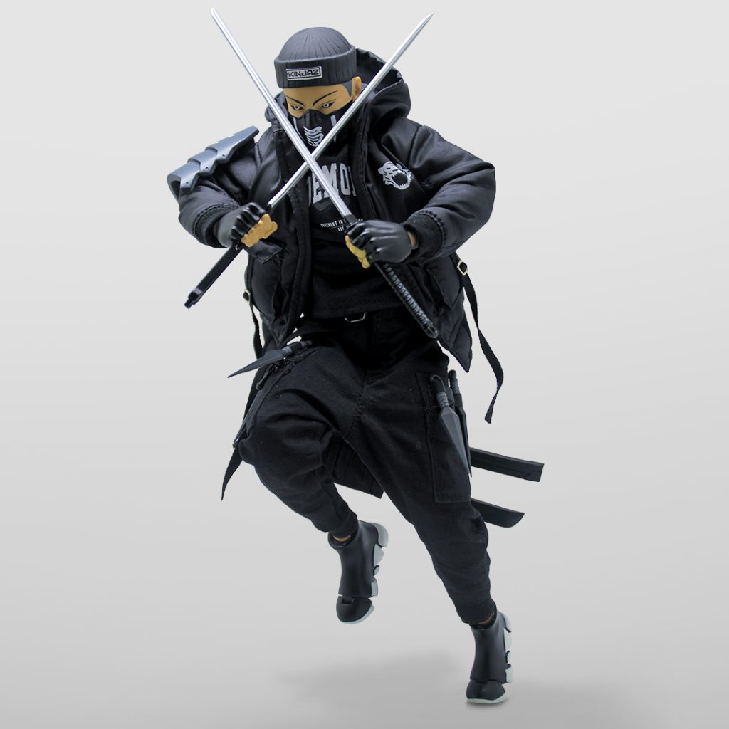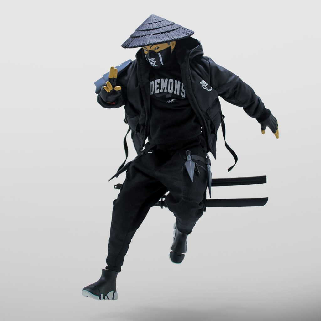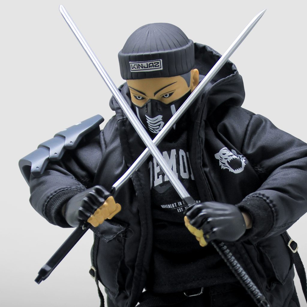 The showpiece, the K-01 figure, a 1:16 scale collectible crafted with exquisite attention to detail, epitomizes the shared values and spirit of Kinjaz and Easy Demons Club, the past, present, and future. This figure, a meld of classic ninja lore, decked out in urban gear and tech wear, ready to conquer shadows and light up the scene. With an array of weapons, headgear, and accessories, this collectible offers enthusiasts the flexibility to customize their figures in a myriad of styles, resonating deeply with fans across the globe.