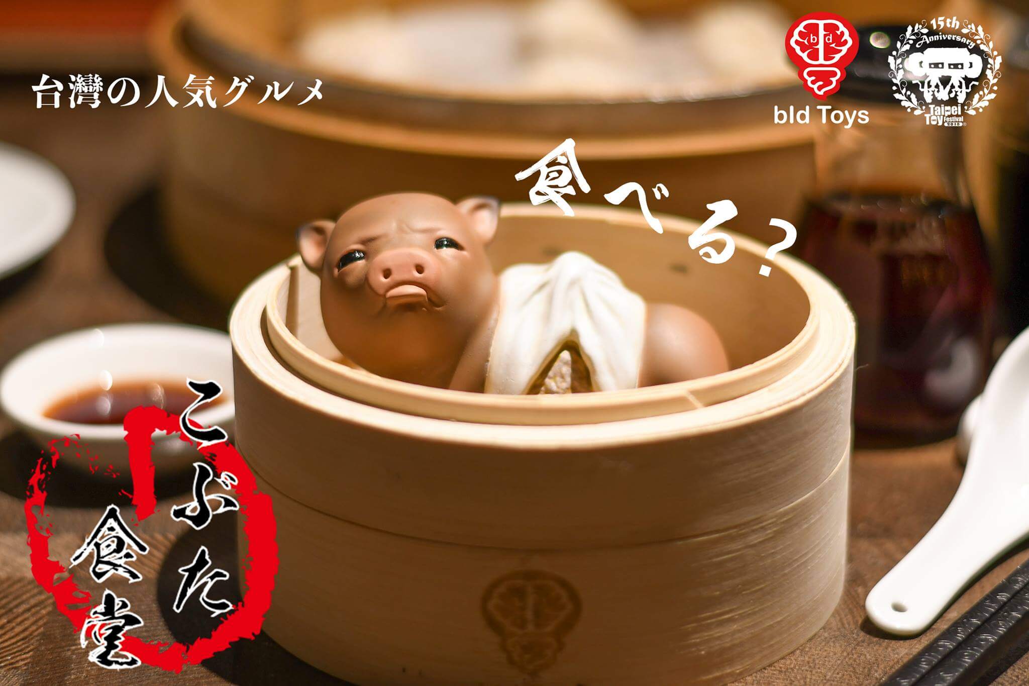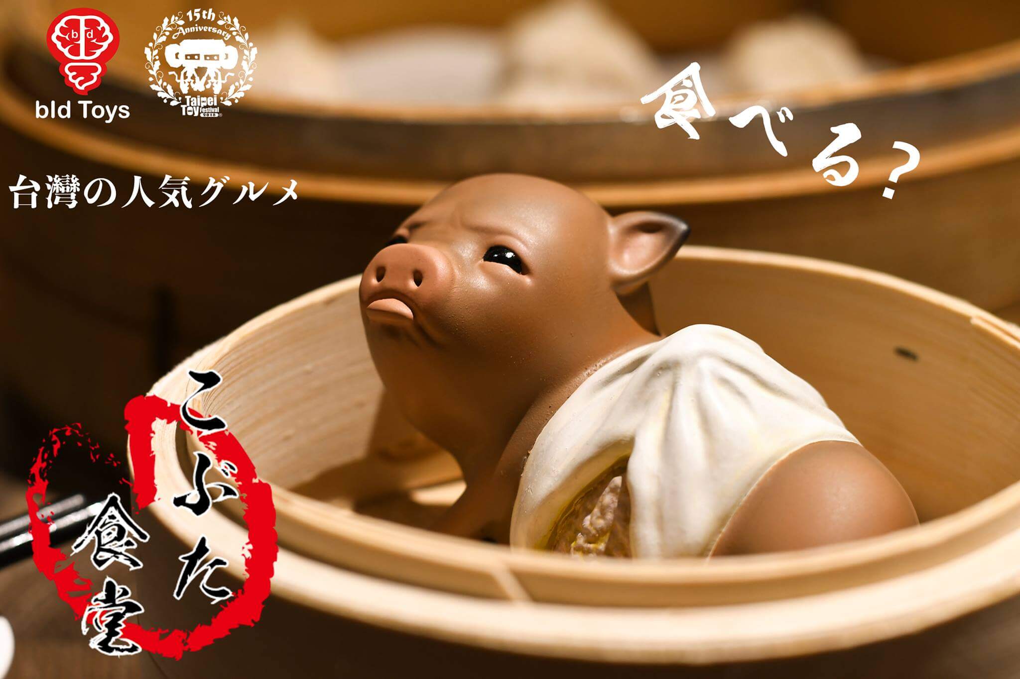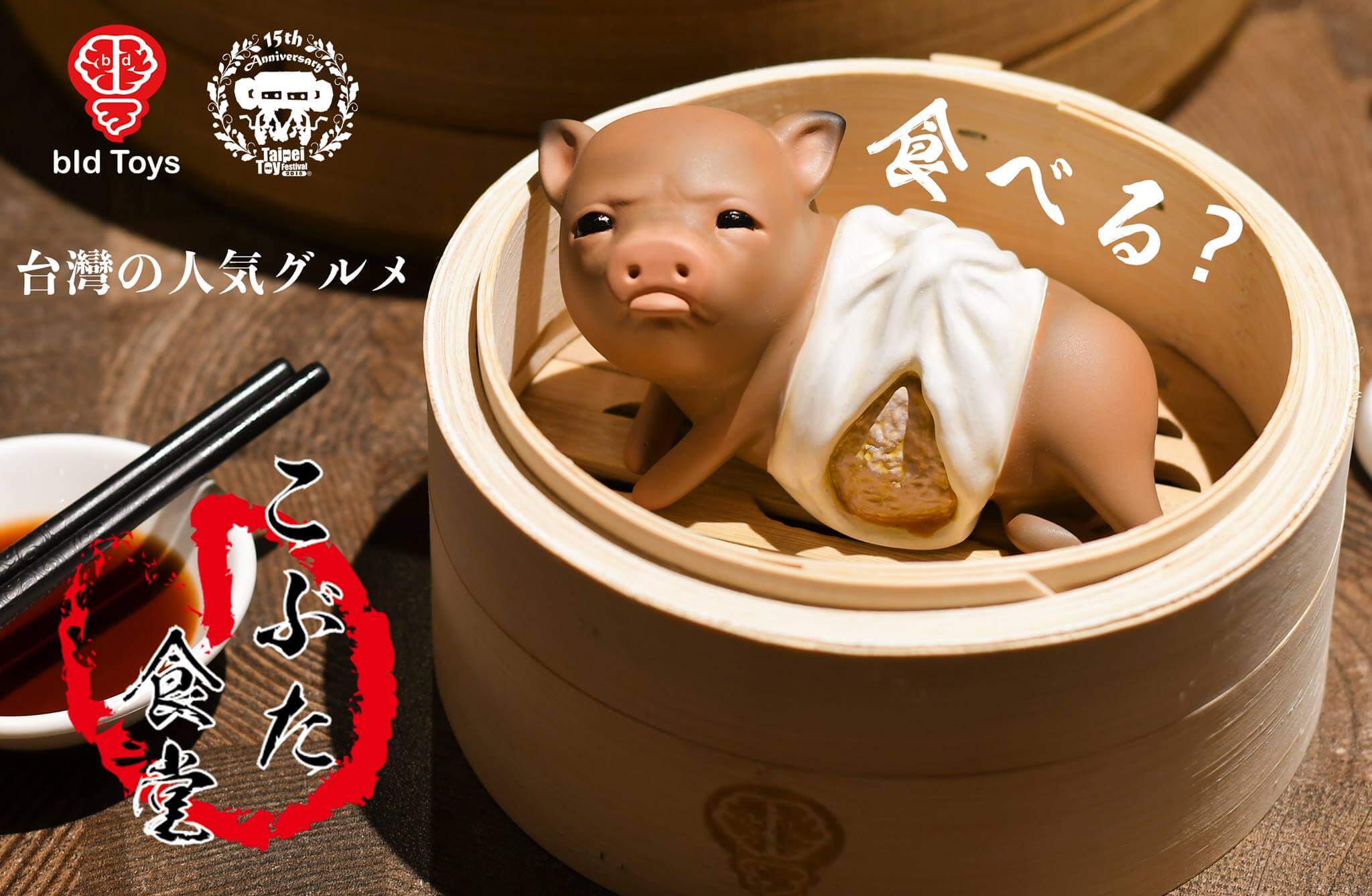 From the chefs who brought you the Kobuta Shokudou-KATSU a new dish has now been served! Vegans look away now as Bid Toys presents the chefs special “Kobuta Shokudou”. Destined for the Taipei Toy Festival and now designed by TMY and sculpt by きゅうごう あ this Bao aint like any other Bao, HA. BId Toys had us in stitches when the first images circulated around the www on there Kobuta Shokudou-KATSU. We would never look at a KATSU in the same way again and now pork in a Bun/ Bao oh my gosh. . That poor pig, look at his emotions. Don’t worry its more resin than pork, OINK. Pretty slapstick humour to be honest and that’s what caught our eye.