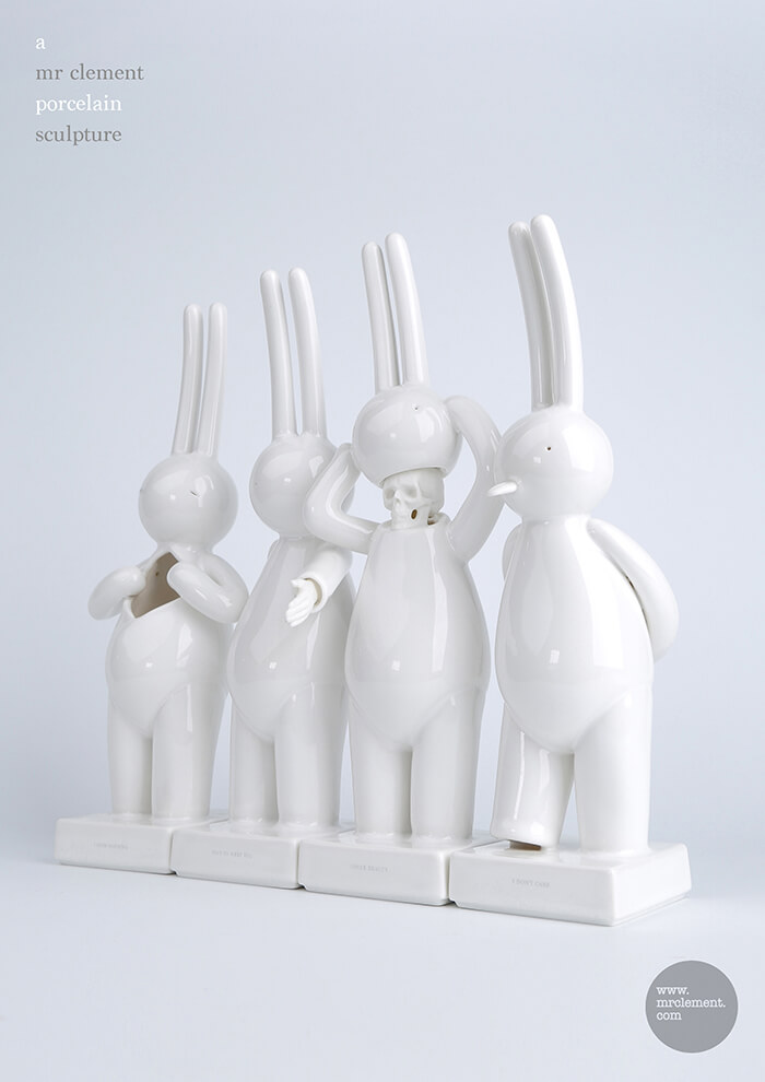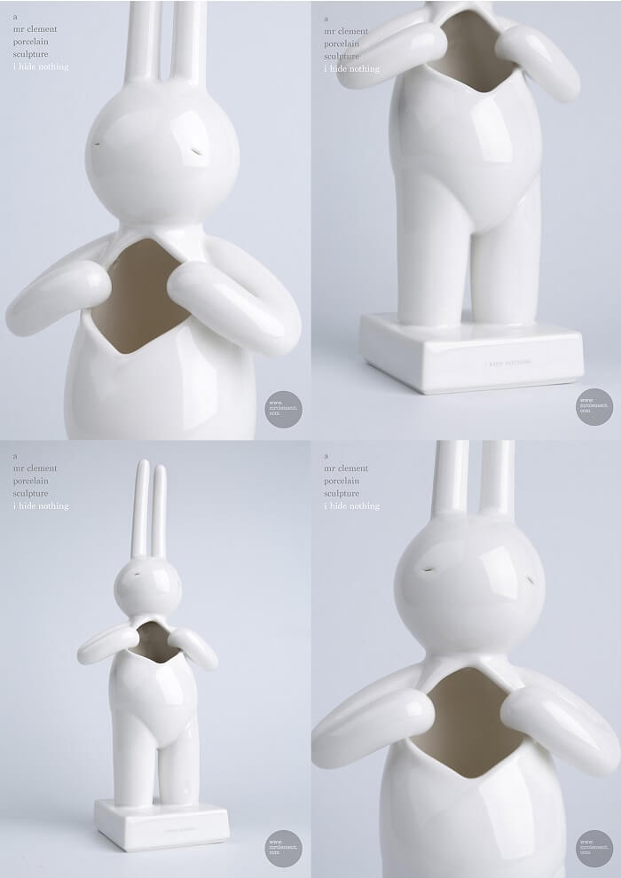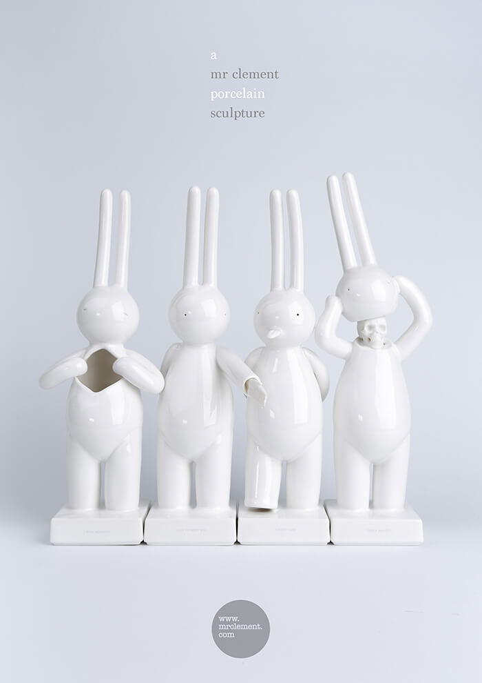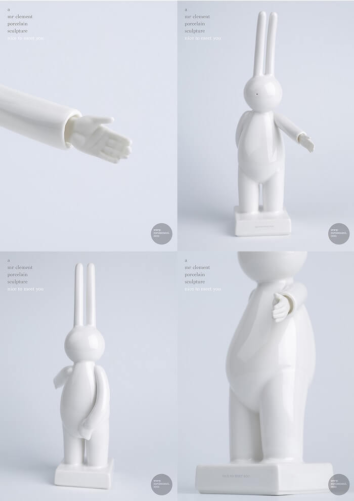 The veteran of the scene Mr Clement announces Porcelain Sculpture Set – 2019 Season I! the first series sees Mr Clement’s Lapain in four poses/expressions ‘I DON’T CARE’ ‘NICE TO MEET YOU’ ‘INNER BEAUTY’ and last but not least ‘I HIDE NOTHING’ in glass glazed fine art white porcelain. All 100% handcrafted by Mr Clement.