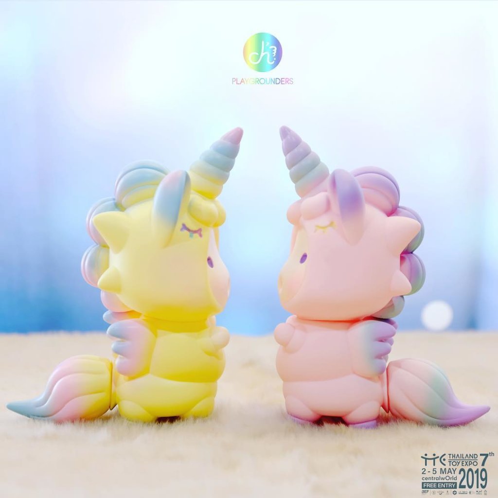 From resin to soft vinyl! Korean artist 플레이그라운더스 Playgrounders Larvo has made the transition to sofubi! Larvo soft vinyl edition made a surprise debut at Thailand Toy Expo 2019 and fans who couldn’t make it to TTE can now own one as international sales have opened. Wide range of editions, as well as the classic resin edition, have been made available.