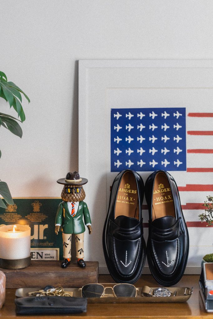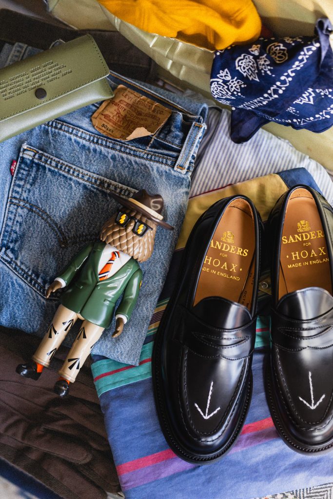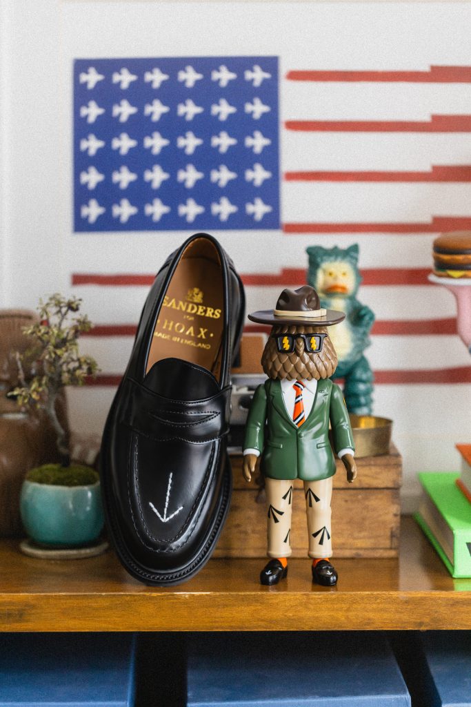 今次慶祝活動更找來設計師 Ronan Leung 及玩具品牌 Unbox Industries 聯手製作別注版的 Leggie Bird “Henry” Figure,除了衣着符合 HOAX Style 造型外,腳上穿着的就是今次150周年版本的 Broad Arrow Penny Loafers!Leggie Bird “Henry” 分別有 Deluxe 版及普及版, 每款限量25隻。Deluxe 版以 Sanders 經典藍色鞋盒包裝,內有150周年紀念鞋袋、聯乘皮墊及設計師親筆簽名卡,別具收藏價值,將由 HOAX 及 ARTDICTED 出售,售完即止。值得一提的是今次聯乘企劃是由 Sanders 官方授權,也是他們首次參與玩具生產,名稱 Henry 就是以目前 Director 即 Sanders 第四代傳人 Henry Sanders 來命名。