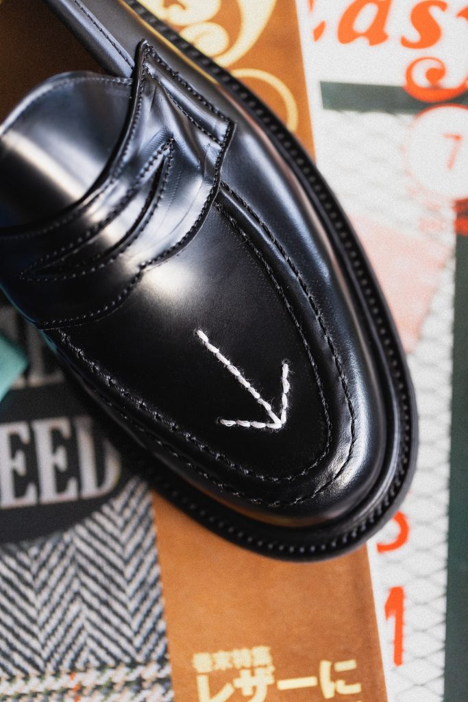 150周年別注型號繼續以代表英國軍方產物的 Broad Arrow 箭咀標誌為設計主軸,縫上今年大熱的 Penny Loafers 上,鞋底以 Goodyear Welted 製法縫紉 Itshide Commando Sole 橡膠大底,更適合日常穿著。Sanders 更透露這次更是品牌首次將這標誌性 Logo 縫在 Loafers 款式上,而且製作難度極高,繼早年 HOAX 提案的 Broad Arrow Derby 後再次有一大突破!