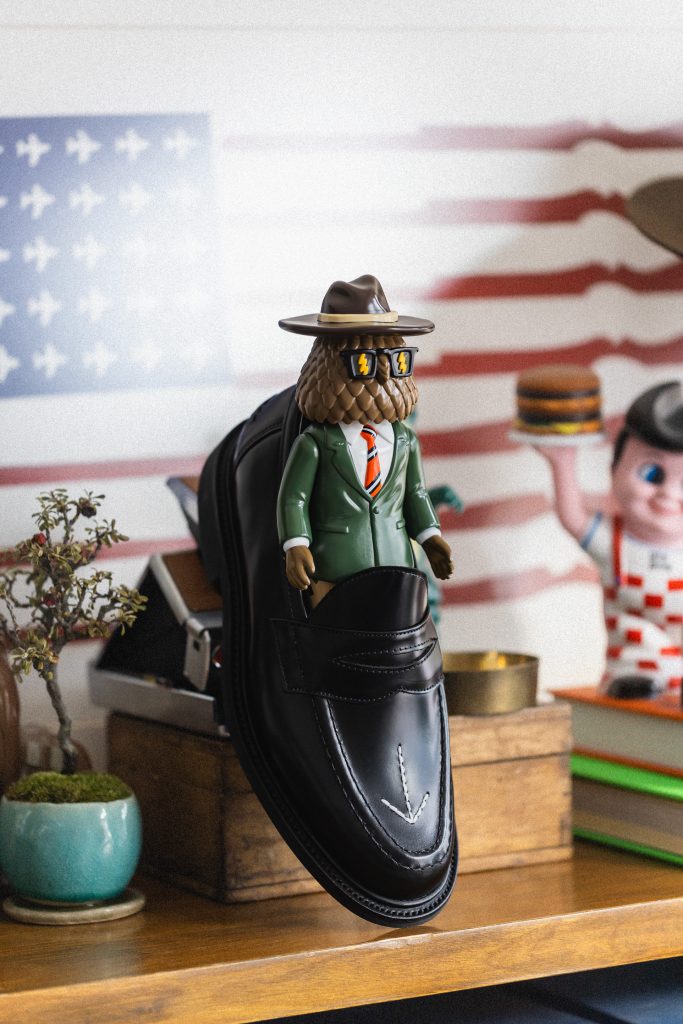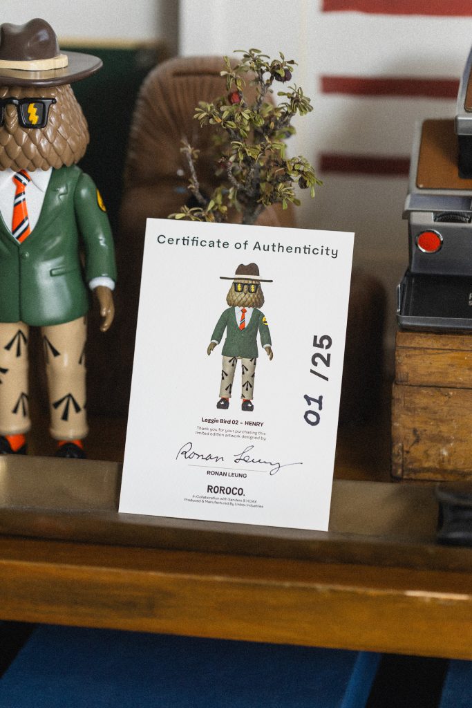 To mark the occasion, Hong Kong designer Ronan Leung and renowned toy brand Unbox Industries have teamed up to produce a special edition Leggie Bird “Henry” figure. Leggie Bird “Henry” is not only dressed in HOAX style, he” ‘s also wearing the 150th Anniversary Edition of the Broad Arrow Penny Loafers! The Deluxe Edition is packaged in a Sanders classic blue Sanders shoe box with 150th Anniversary shoe bag, co-packed leather pads and an authentication card signed by the designer Ronan Leung and will be sold by HOAX and ARTDICTED while stocks last. It’s worth mentioning that this collaborative project is officially licensed by Sanders, and it’s also the first time they have participated in the production of art toys. The name “Henry” refers to the current Sanders Director – Henry Sanders, who is the fourth generation of Sanders.