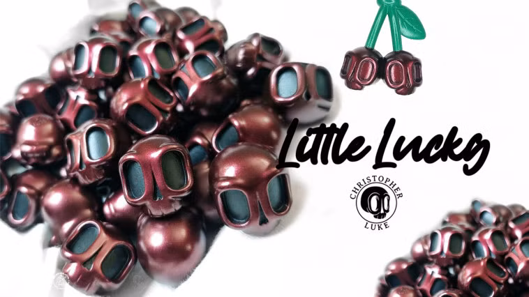 UK-based artist Christopher Luke is ready to pop your cherry with his latest Little Lucky! No seeds in these ones only the chance to own a Little Lucky – Black Cherry Edition PLUS a chance with each purchase gets you a chance for a double cherry chase and there’s a 1 in 45 chance of obtaining it, so it’s a very rare chase! These distinctive Little Lucky / Dead Lucky skulls are giving us a boner! ooops sorry too much info for you but good luck today on securing a Little Lucky Black Cherry edition.