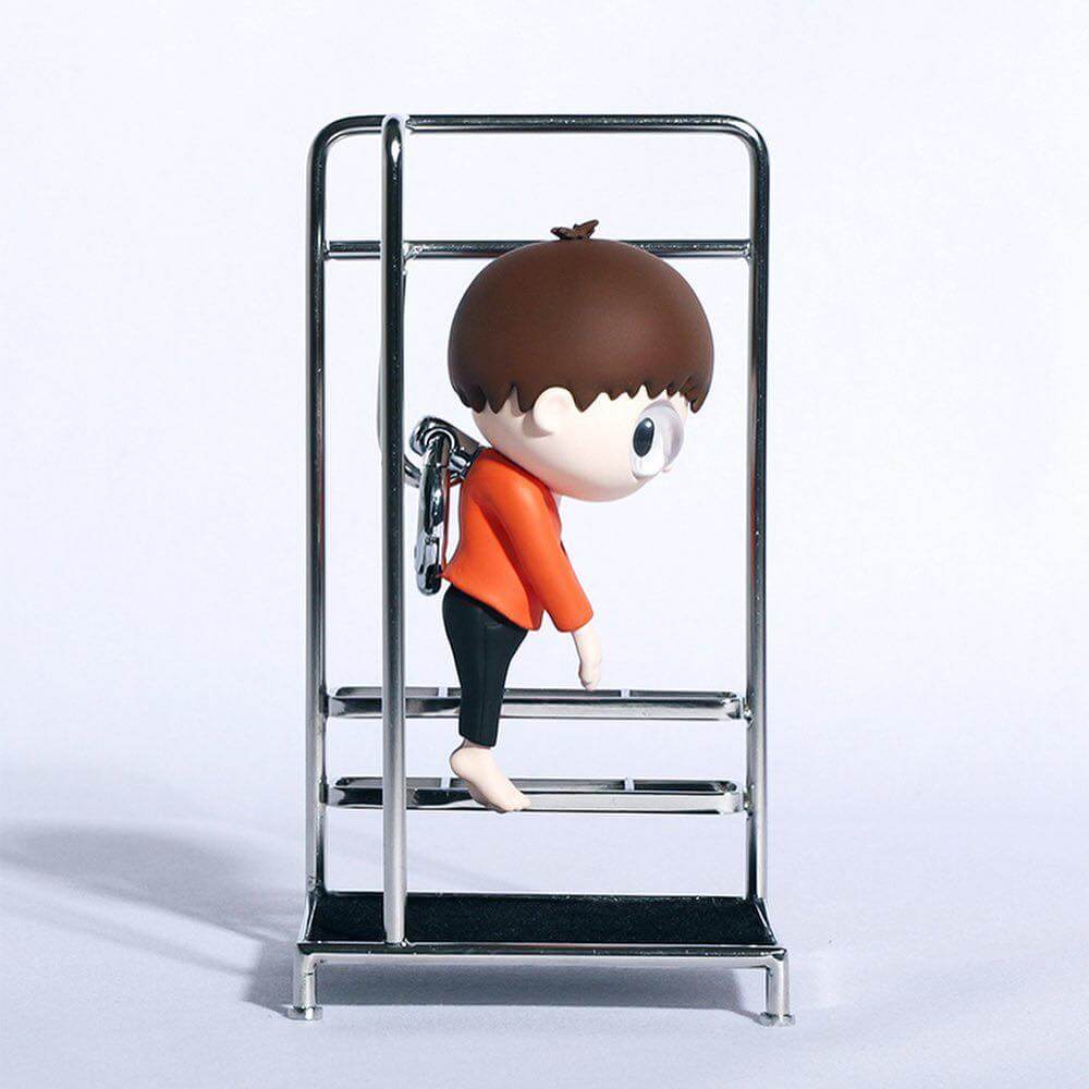 Here Cattelan is depicted in an innocent and youthful way with Javier’s signature big-eyed children look. “Little Maurizio” is above and beyond the idea of a figurine. It can be a necklace, a key chain, a bag tag or anything matching the daily fashion and one can take it everywhere.