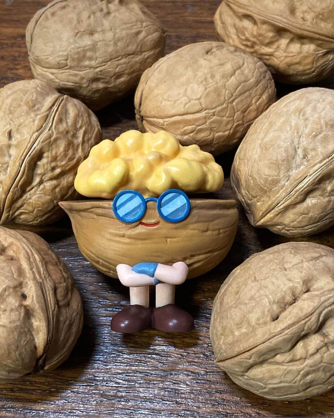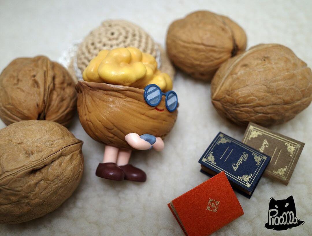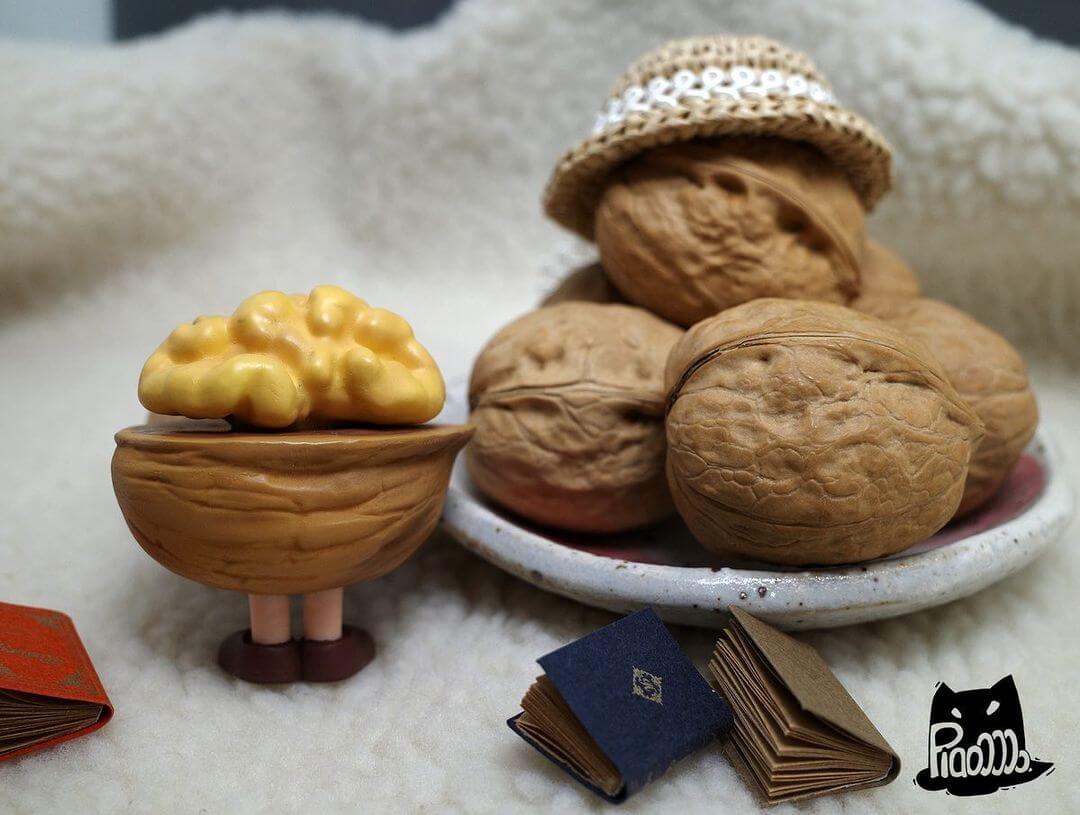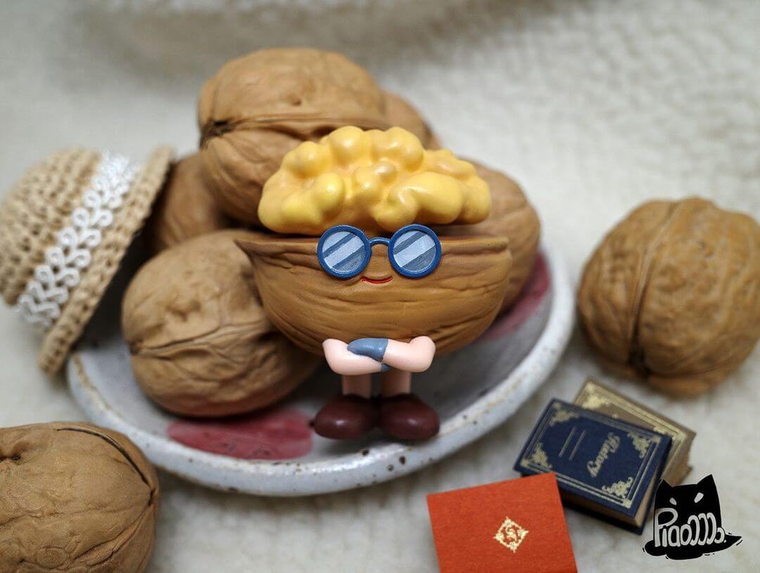 According brainfutures.org A newly published study says that walnuts, hazelnuts and almonds could be a preventive agent against cognitive decline and neurodegenerative diseases such as Alzheimer’s. For researchers, walnuts are the top nut for brain health. As the Chinese have said the same thing past on from generations to generations as the walnuts resemble the brain! Whatever the case is, PiaoOOOo Studio is back with something different! from the mastermind behind those Cat Gangs comes Little Walnut! The brightest and brainiest nut ever.