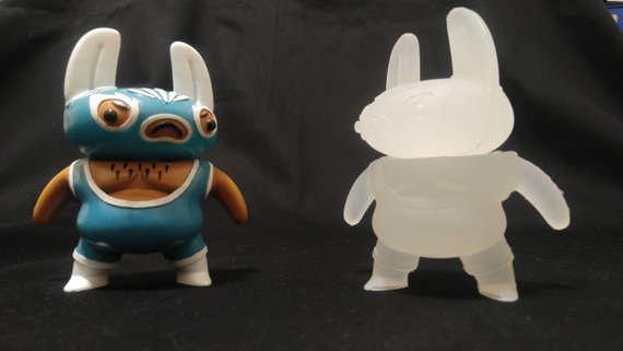 Lucha Bunny is a redesign of one of our previous figures, Buff Bunny. Lucha Bunny was created using out new production pipeline so he has better stability, detail, and more resilient resin. Lucha bunny is a 5in tall figure with 1 point of articulation, a swivel at the head. The original Buff Bunny was a design created by@MayaLee_Art and redesigned by her as well.